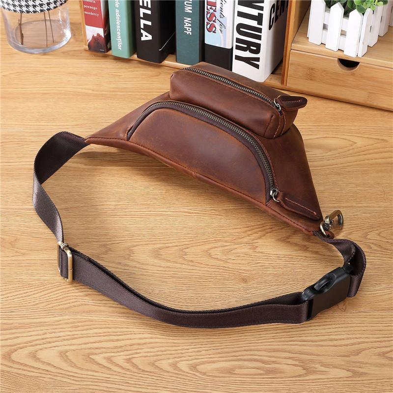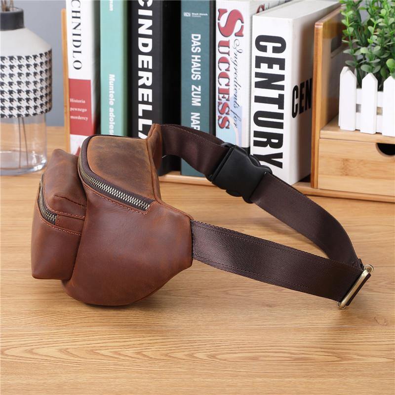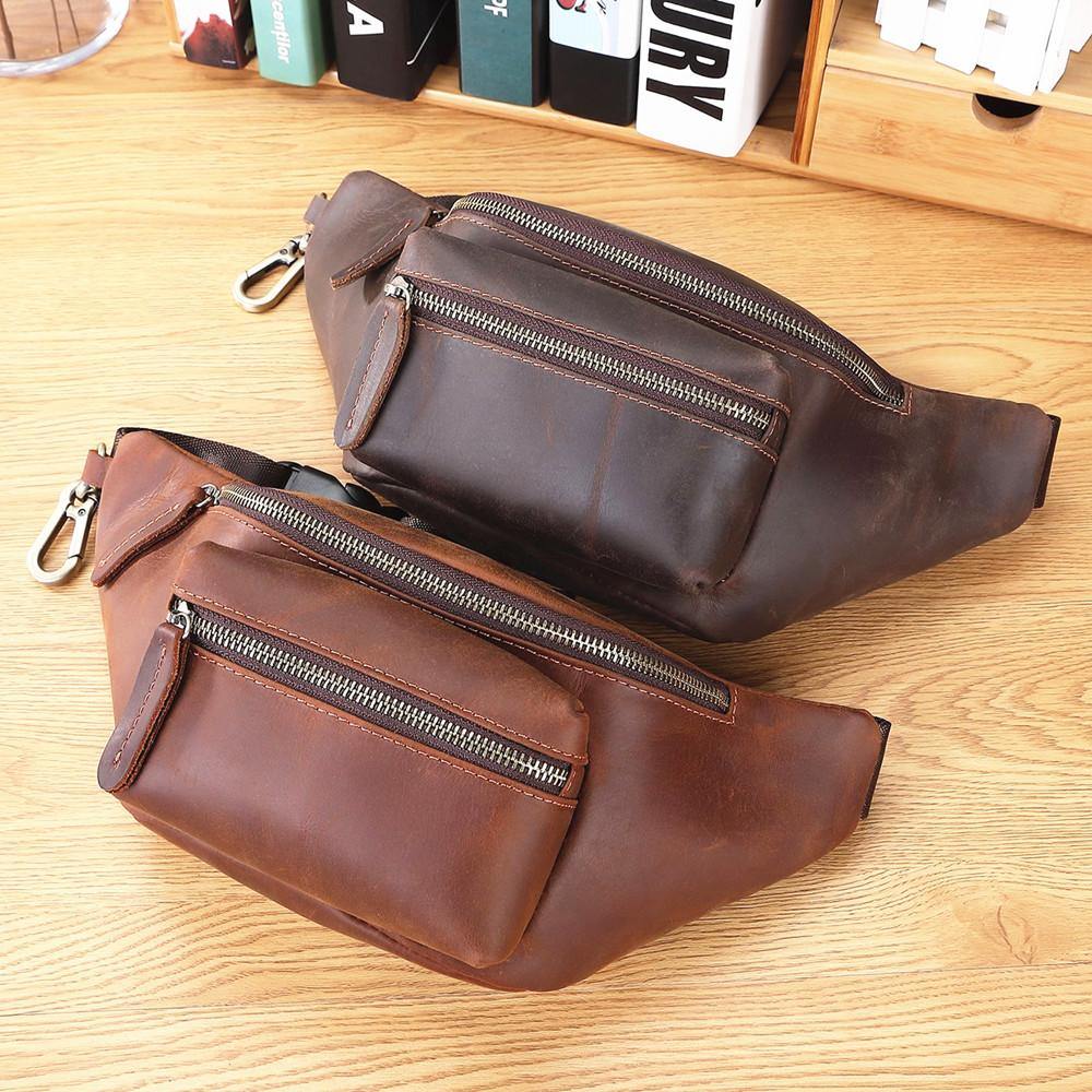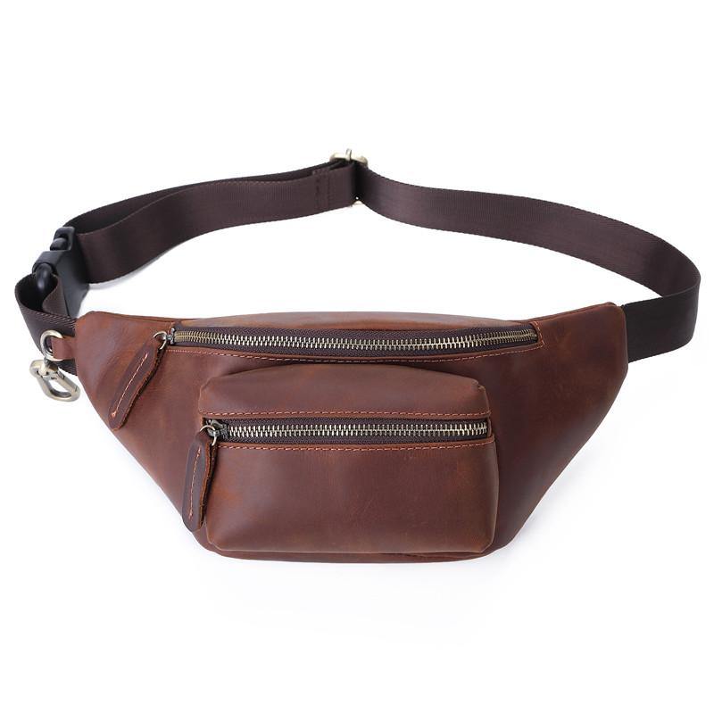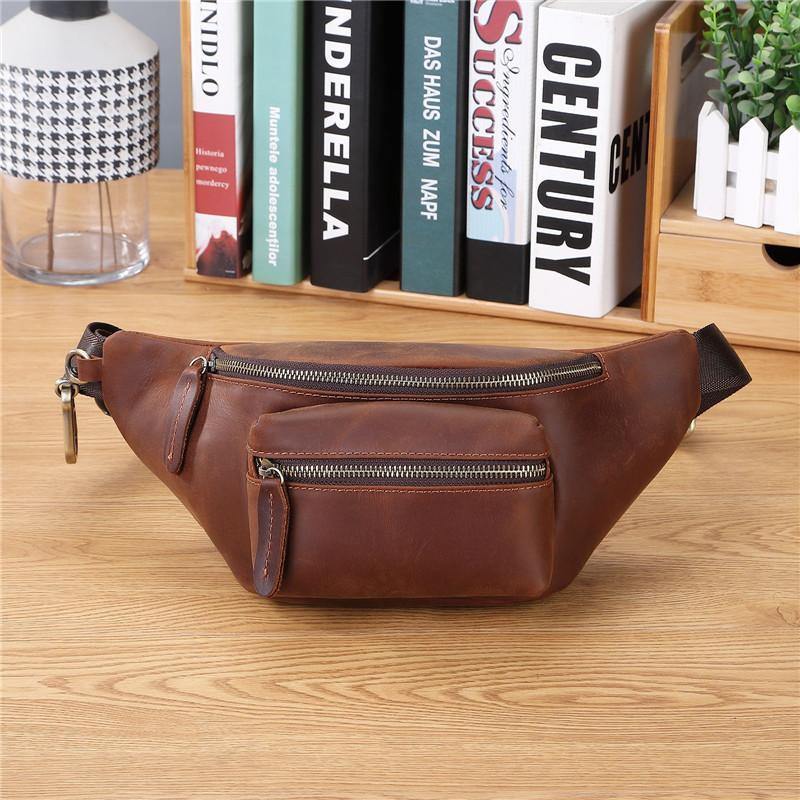Style: Mens Leather Fanny Packs Bum Bag Hip Pack Brown Leather Waist Bags for Men