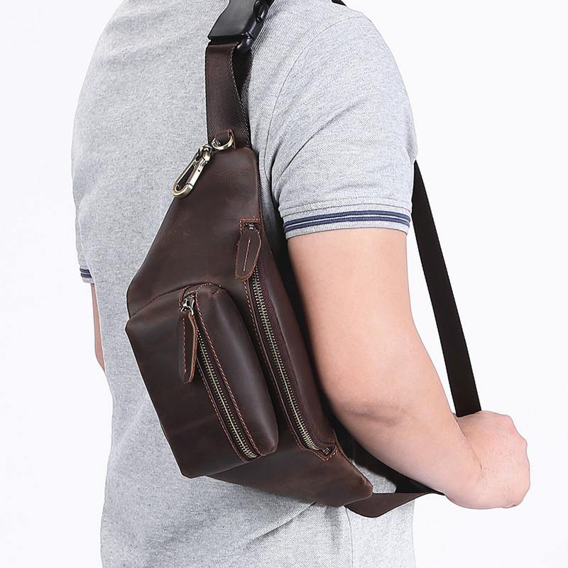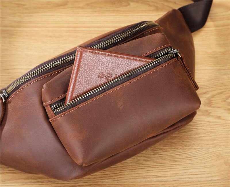 Design: Mens Leather Fanny Packs Bum Bag Hip Pack Brown Leather Waist Bags for Men