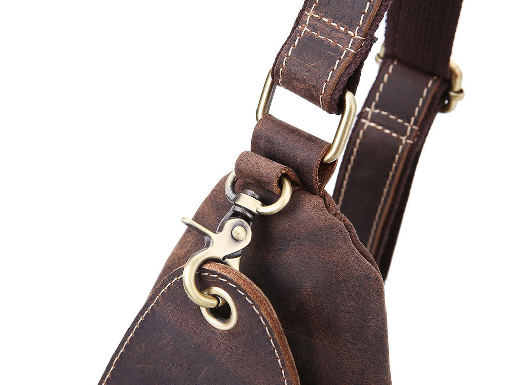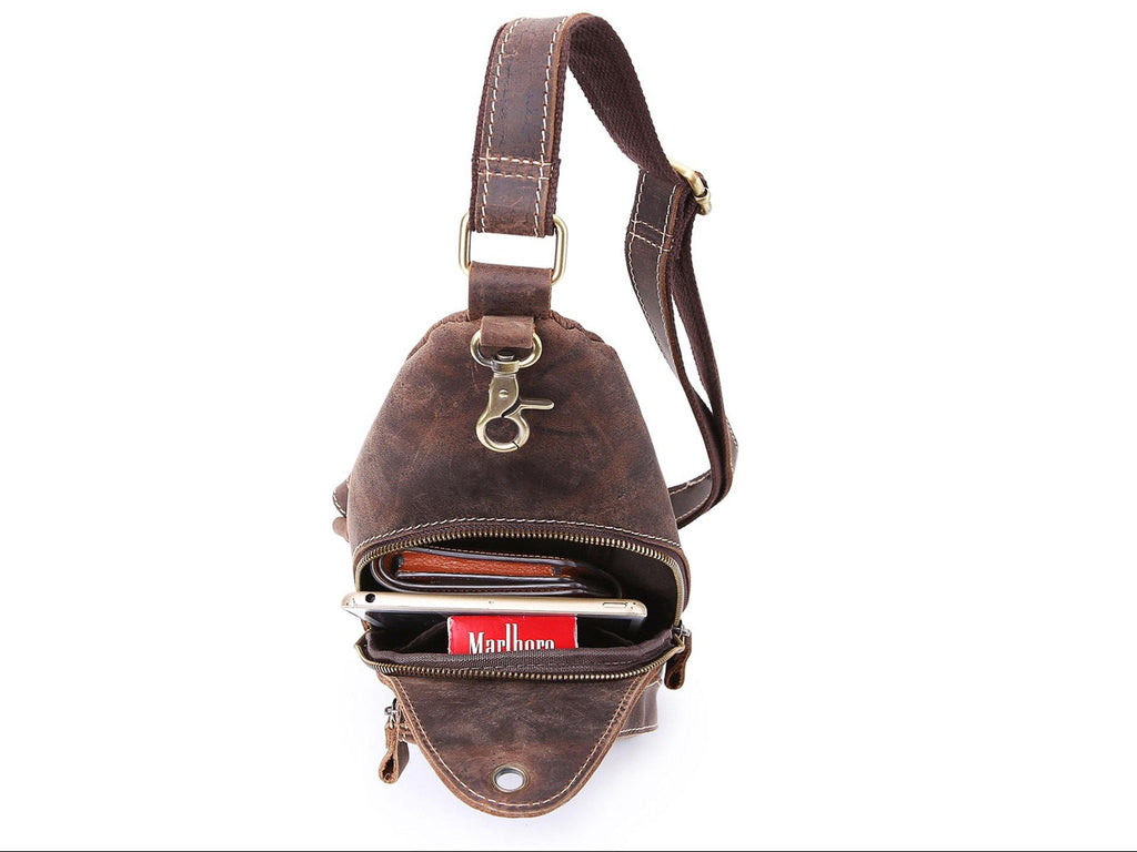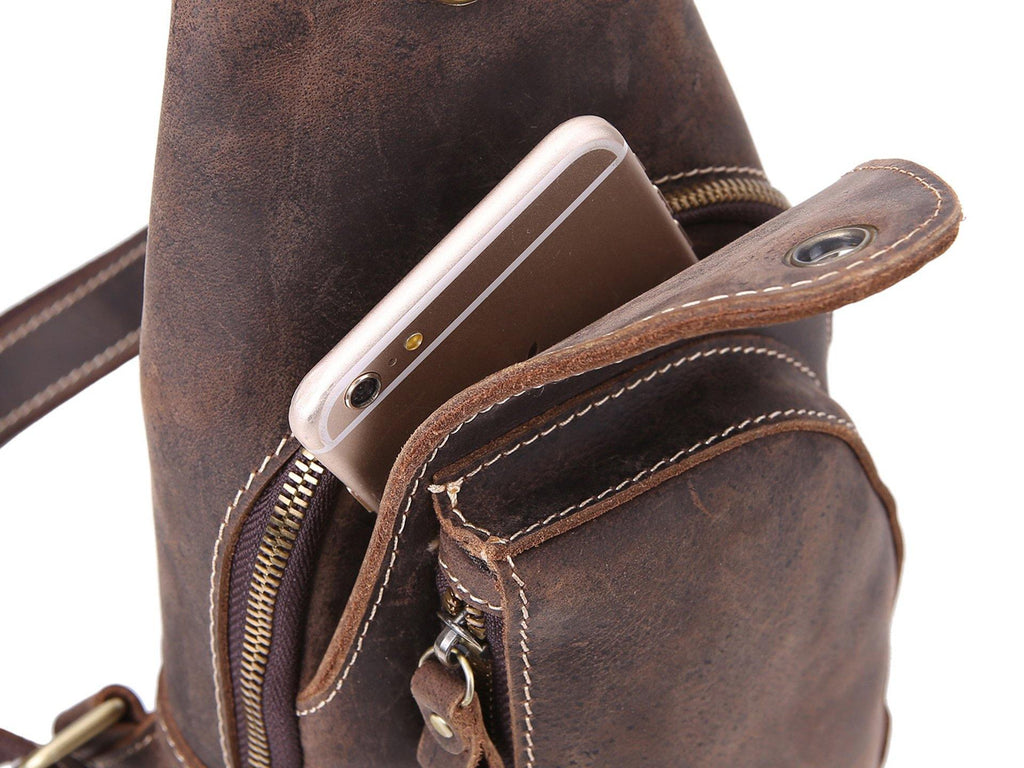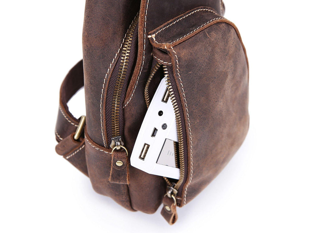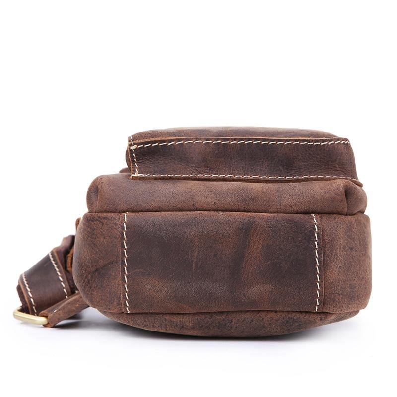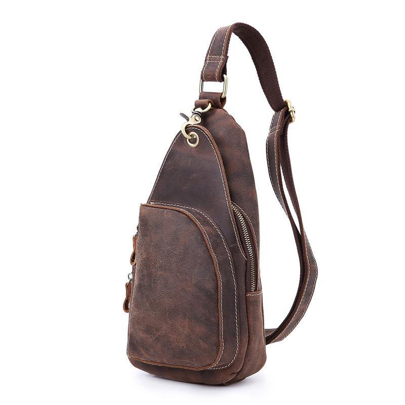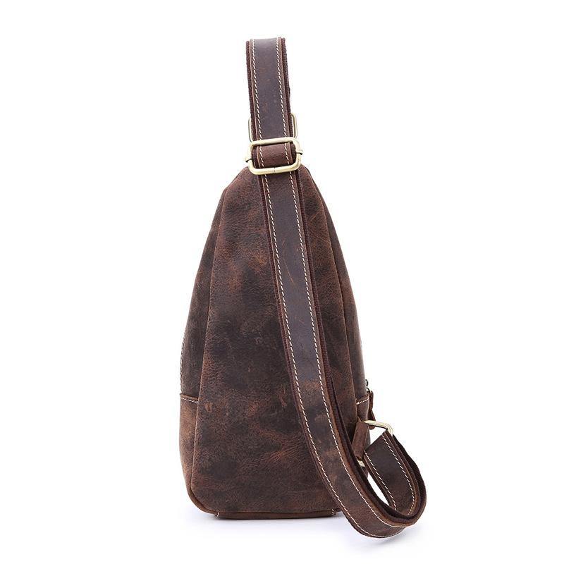 Design: Retro Brown Leather Backpack Men's Small Sling Bag Chest Bags One shoulder Backpack Sports Bag For Men
