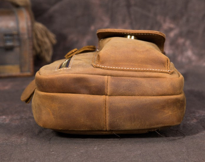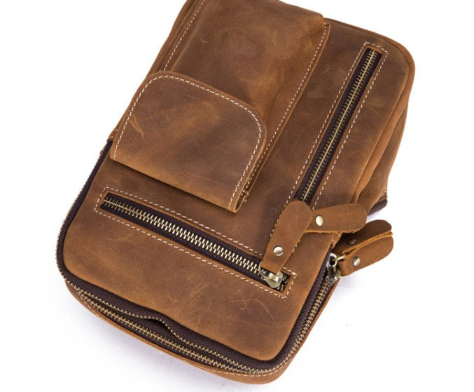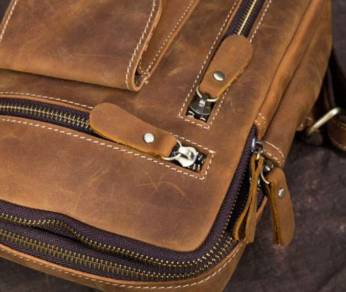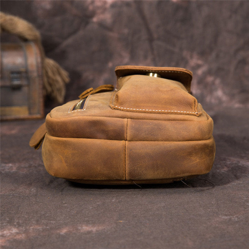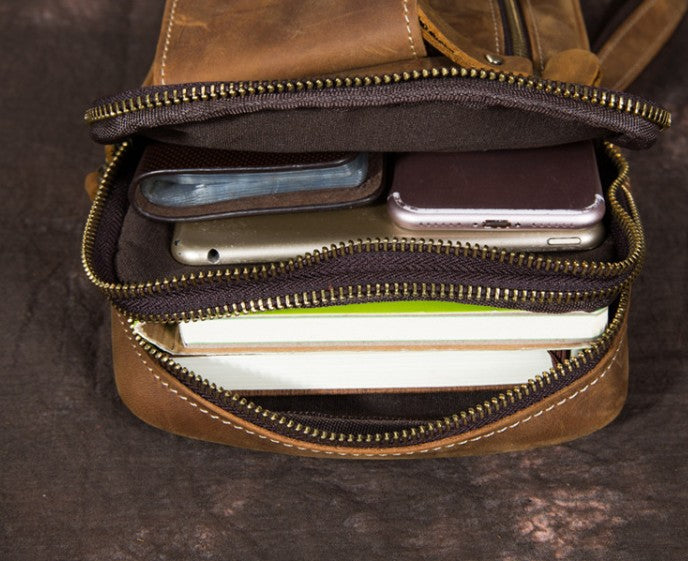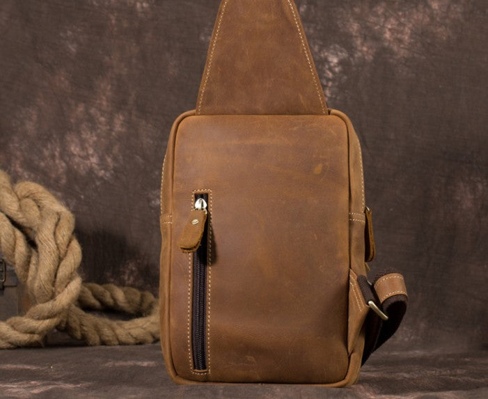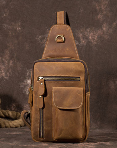 Brown Leather One Shoulder Backpack Chest Bag Sling Bag Sling Crossbody Bag For Men