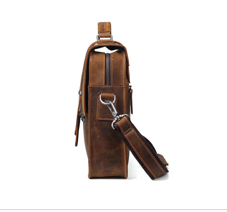 Design: Vintage Brown Leather Men's Professional Briefcase Handbag 14‘’ Laptop Briefcase For MenOverview: