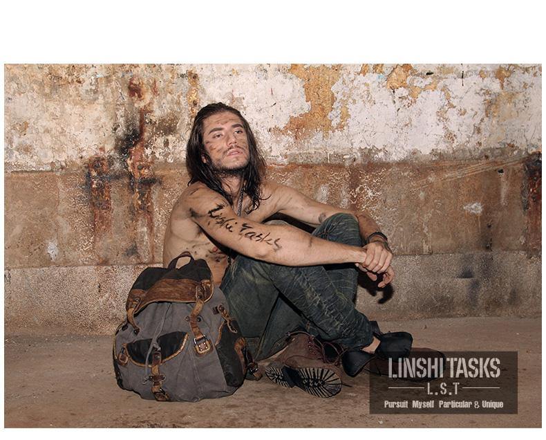 Style: Retro Canvas Leather Mens Large Washed Gray Backpack School Backpack Canvas Travel Backpack For Men