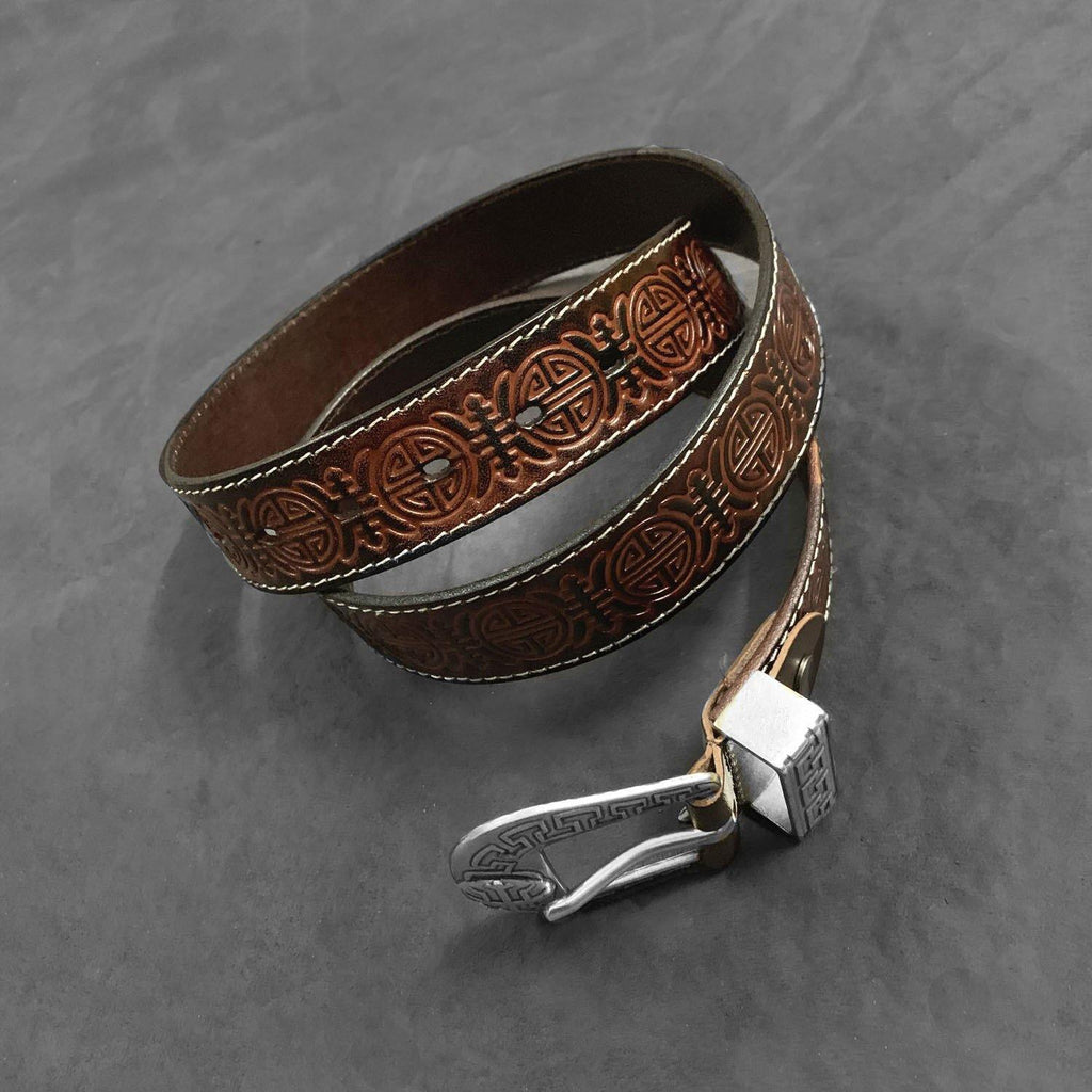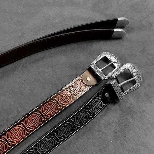 Design: Retro Chinese Style Leather Metal Belt Motorcycle Belt Leather Round Belt For Men