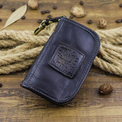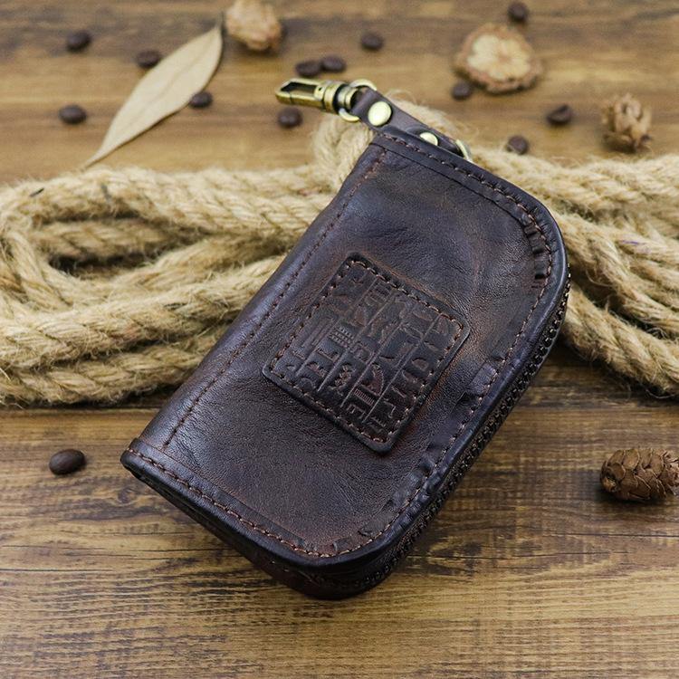 Style: Retro Dark Brown Leather Men's Large Key Wallet Key Case Car Car Key Holder For Men
