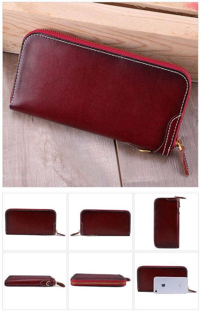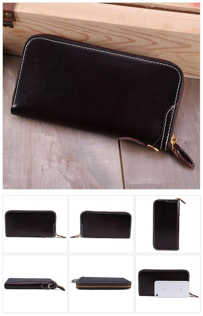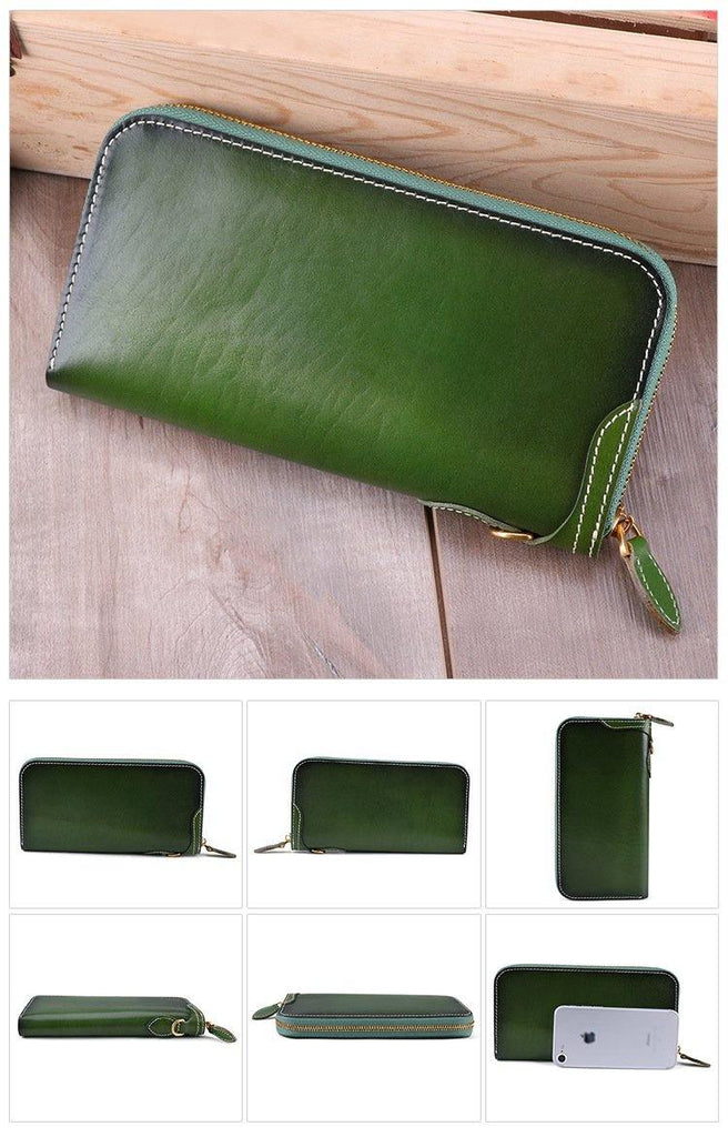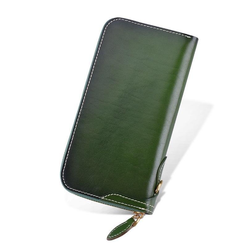 Design: Retro Dark Brown Leather Men's Long Wallet Army Green Simple Long Wallet Clutch For Men