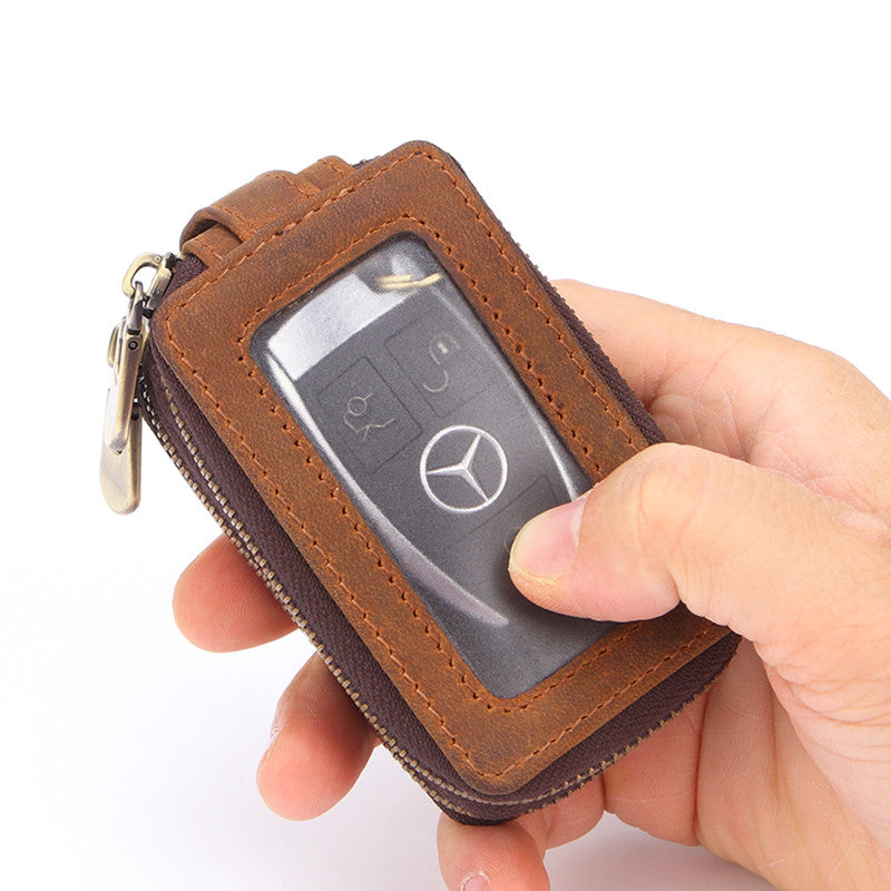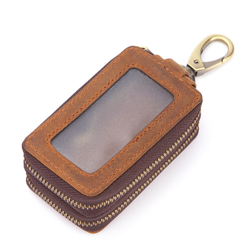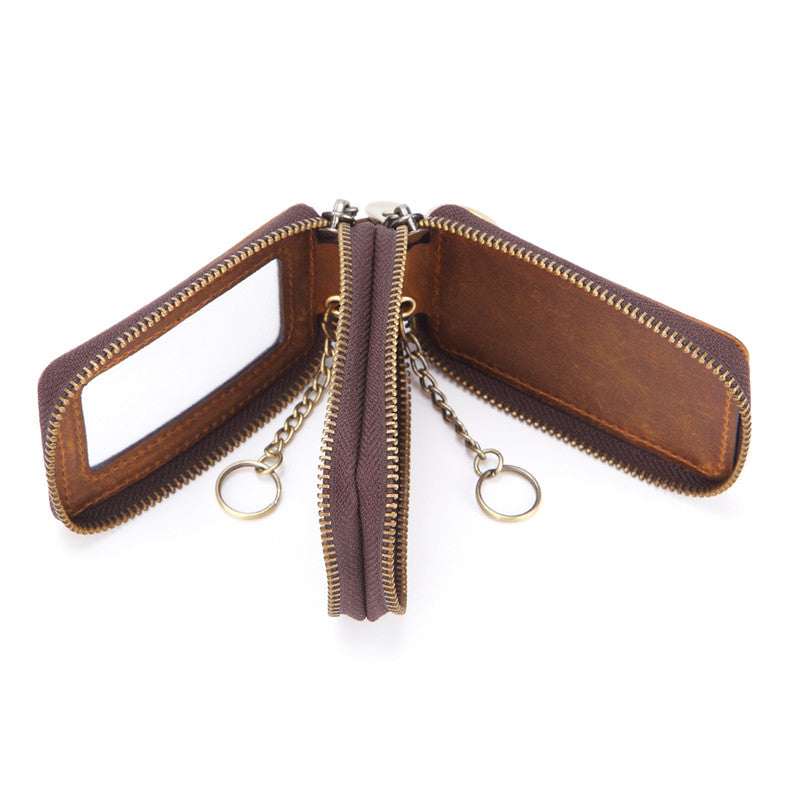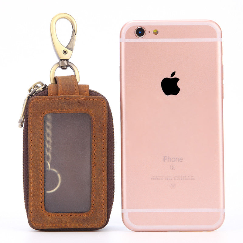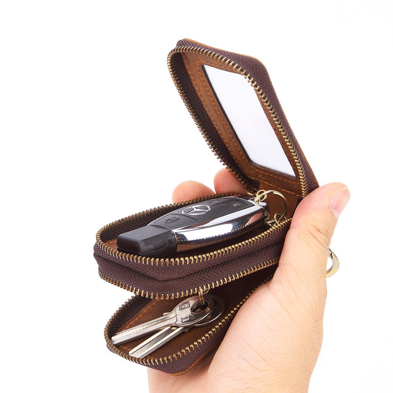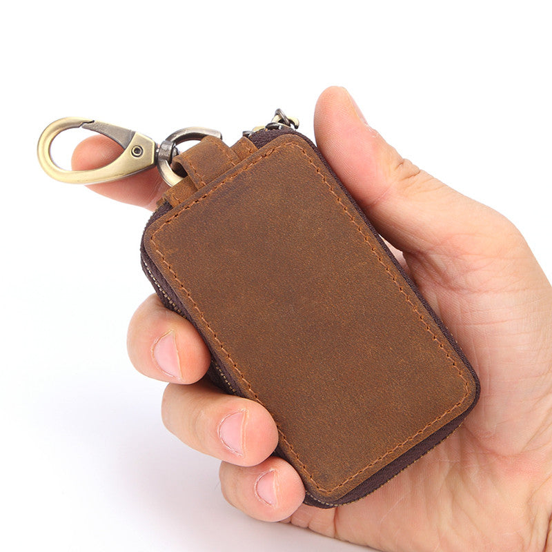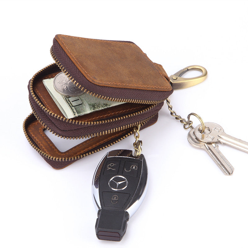 Design: Cool Brown Mens Zipper Leather Car Key Wallet Key Holder Change Holder For Men