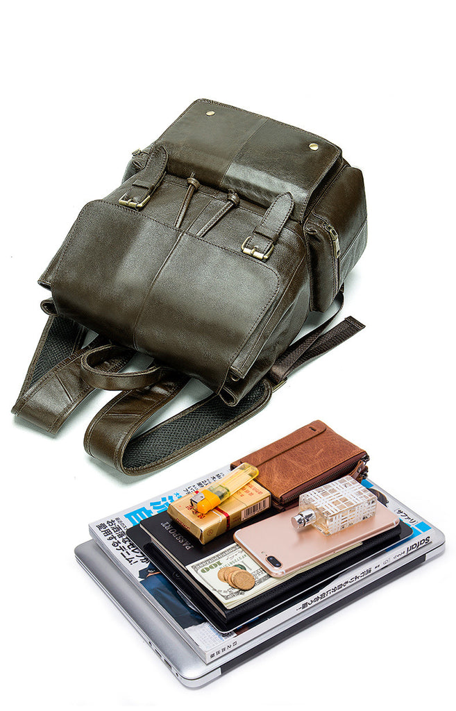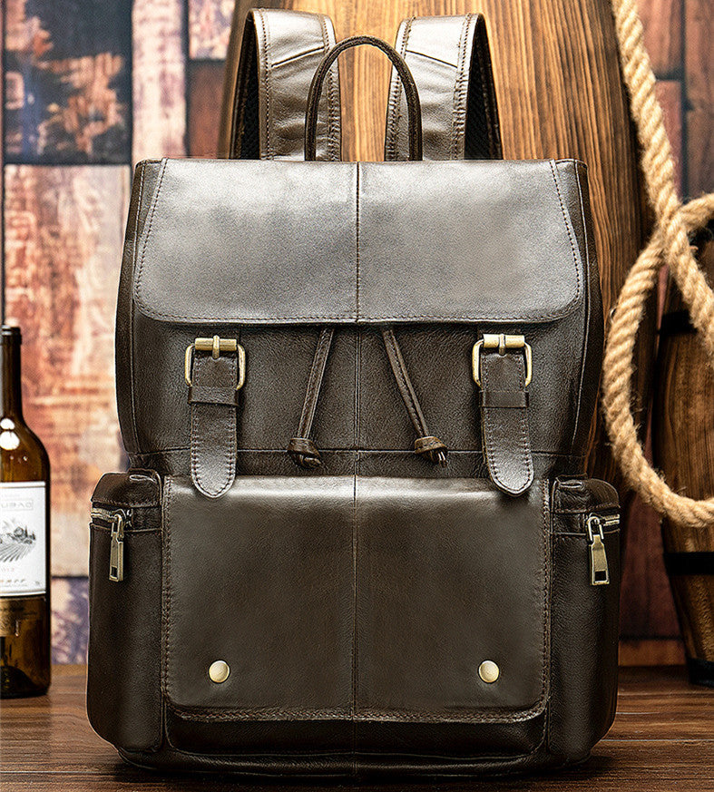 Design: Fashion Leather Men's School Backpack 14inch Computer Backpack Satchel Backpack For MenOverview: