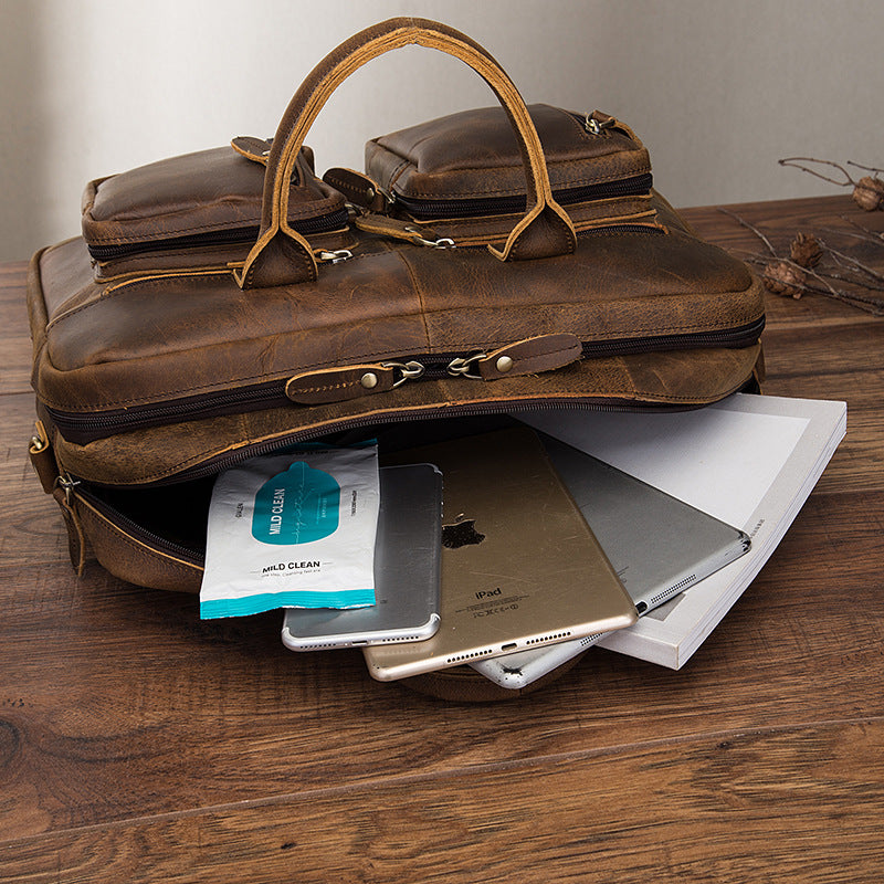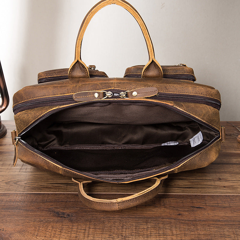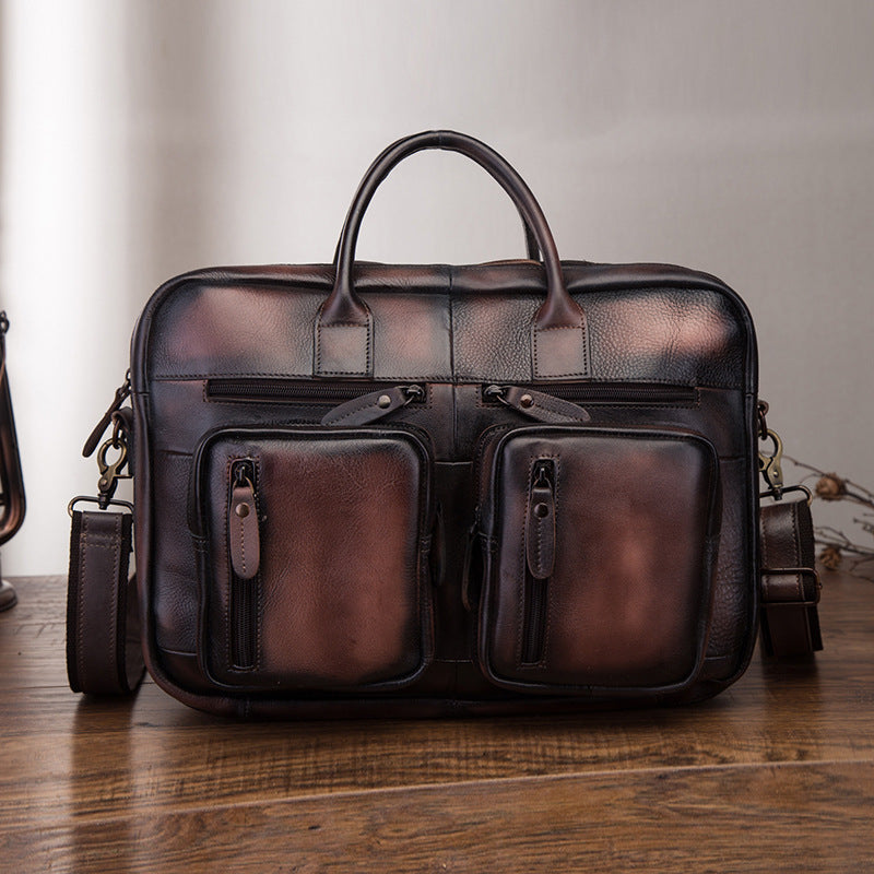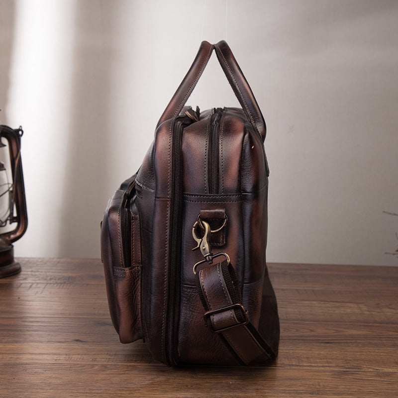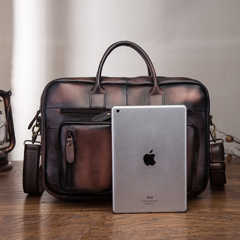 Style: Vintage Brown Leather Men's Briefcase 14'' Computer Bag Professional Handbag For Men