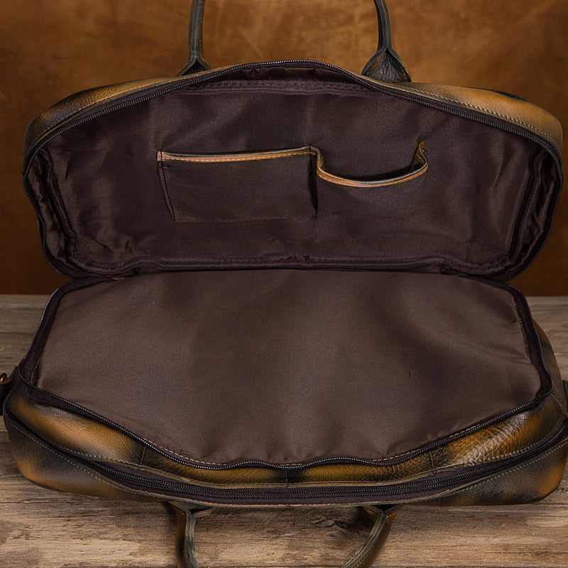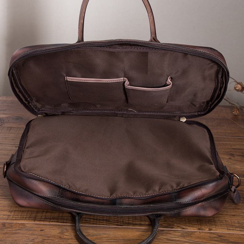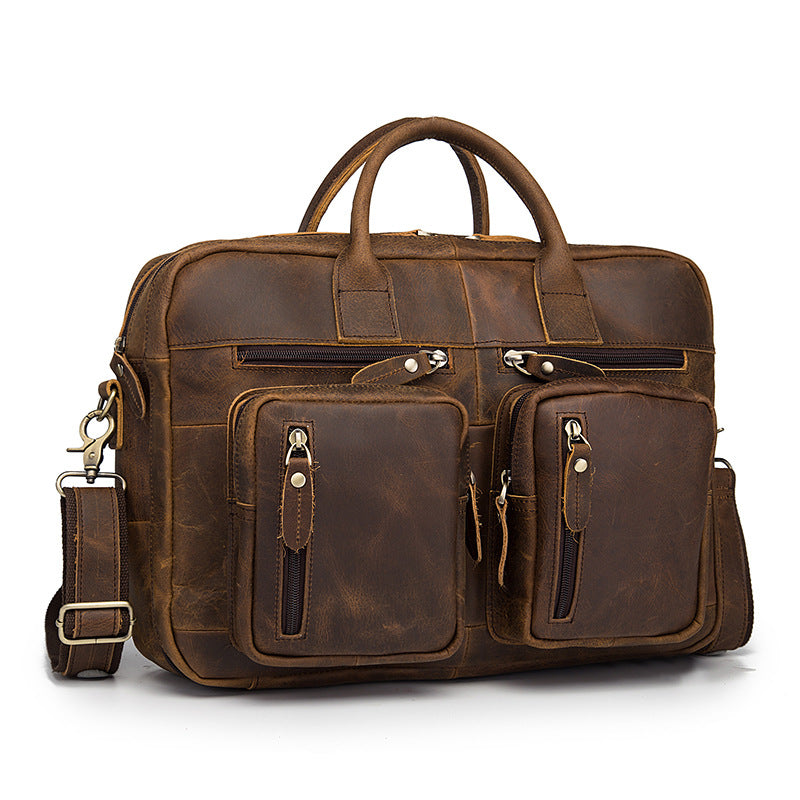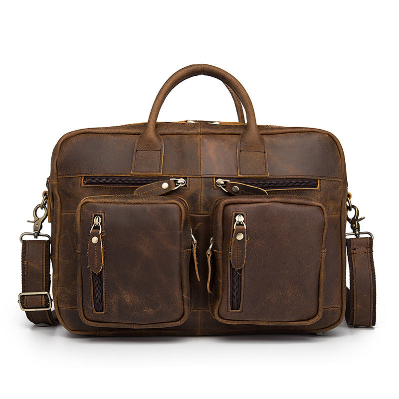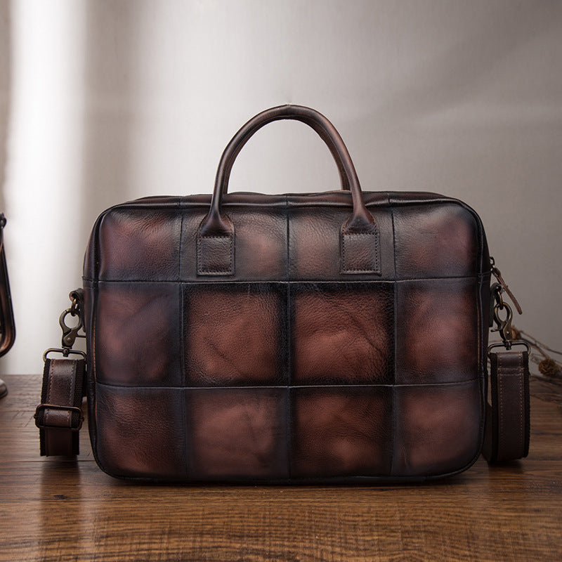 Style: Vintage Brown Leather Men's Briefcase 14'' Computer Bag Professional Handbag For Men