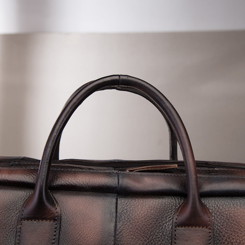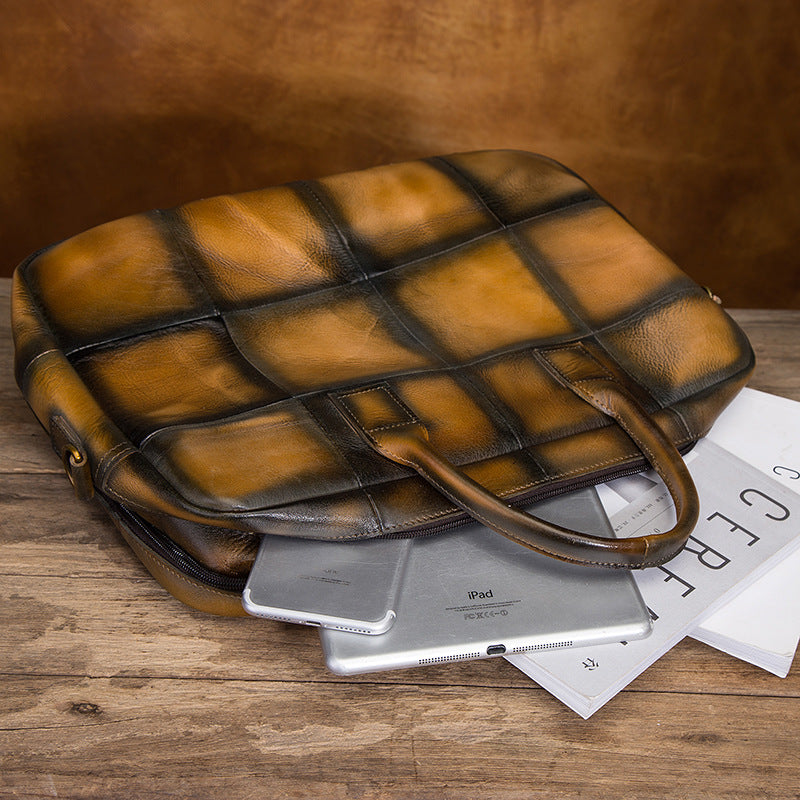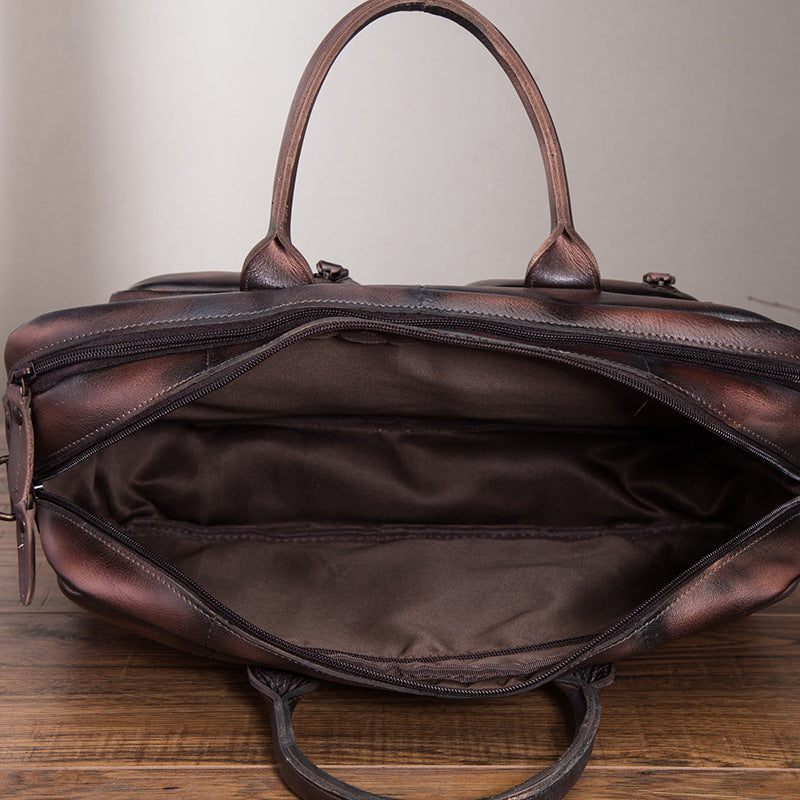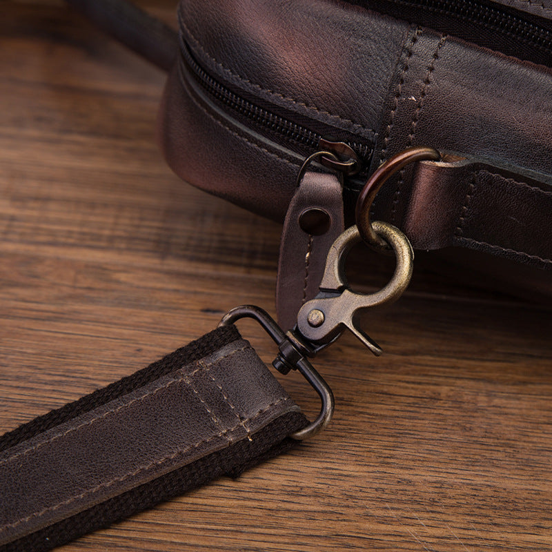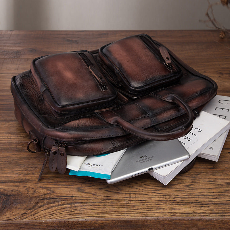Vintage Brown Leather Men's Briefcase 14'' Computer Briefcase Professional Handbag For Men