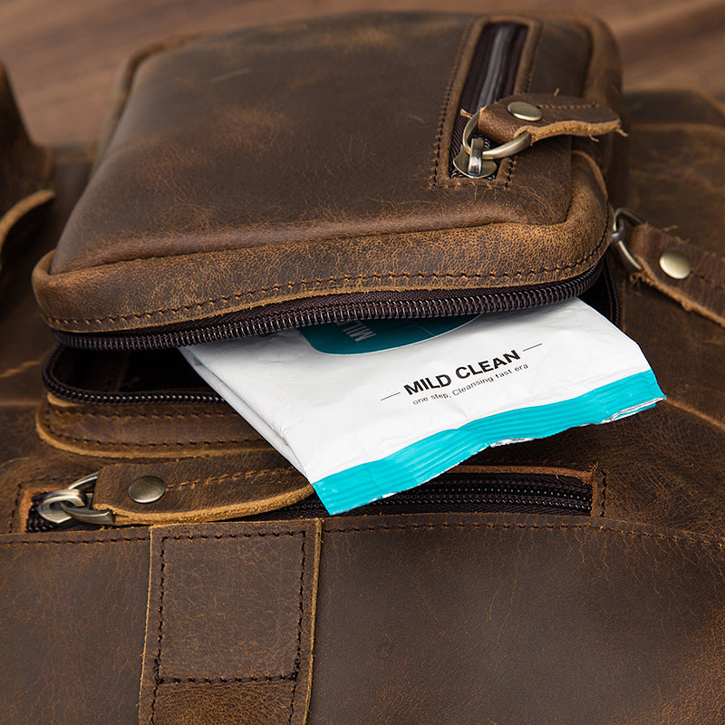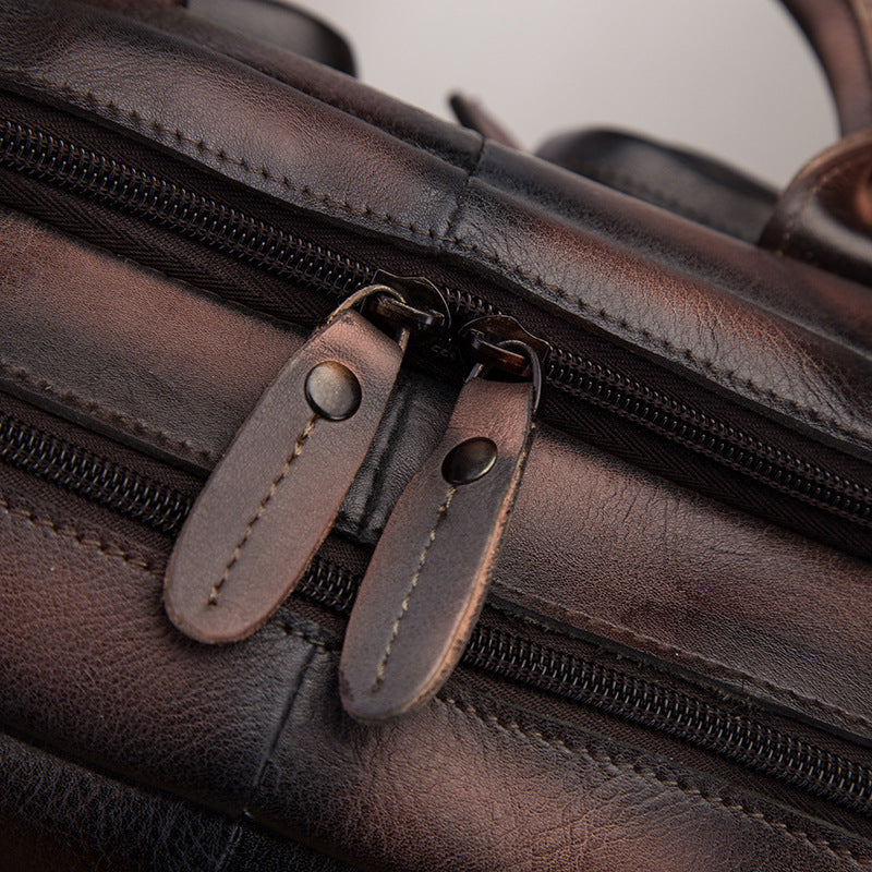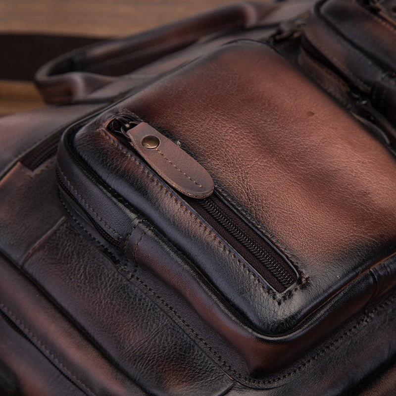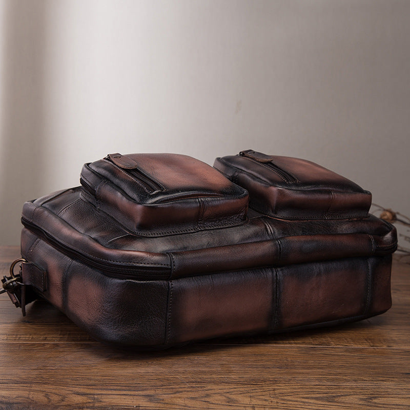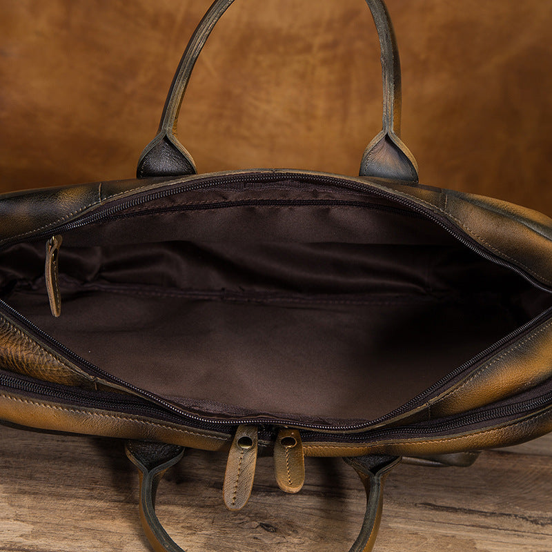 Vintage Brown Leather Men's Briefcase 14'' Computer Briefcase Professional Handbag For Men