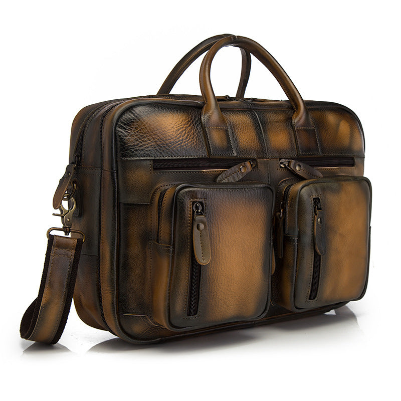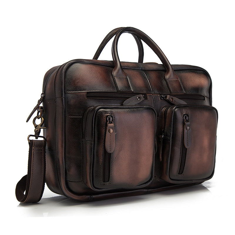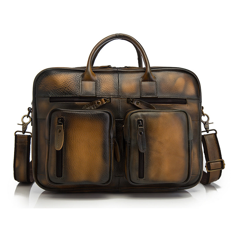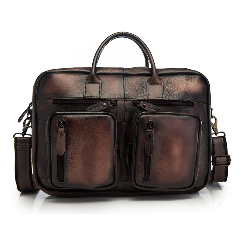 Design: Vintage Brown Leather Men's Briefcase 14'' Computer Bag Professional Handbag For Men