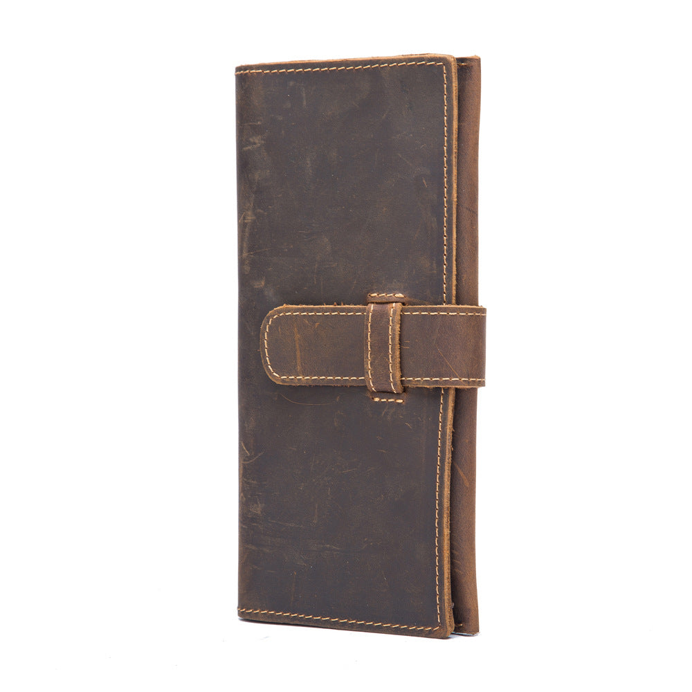 Vintage Brown Leather Men's Bifold Long Wallet Slim Multi Cards Long Wallet For Men