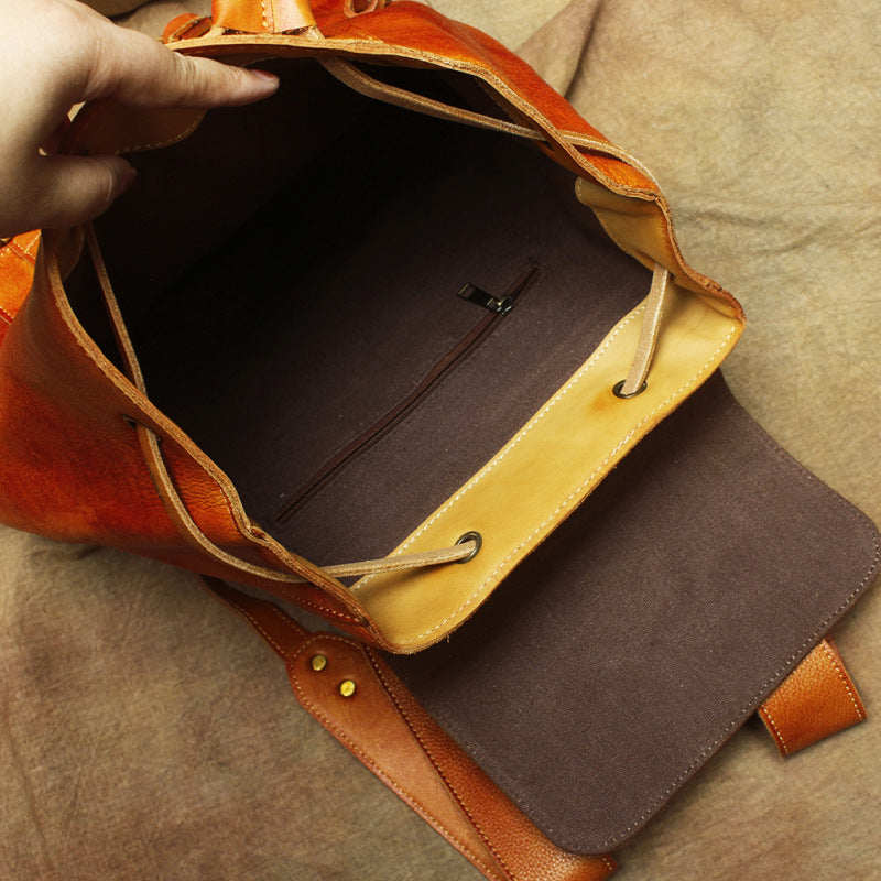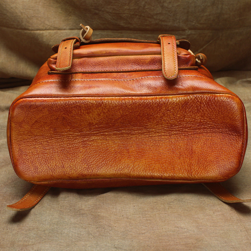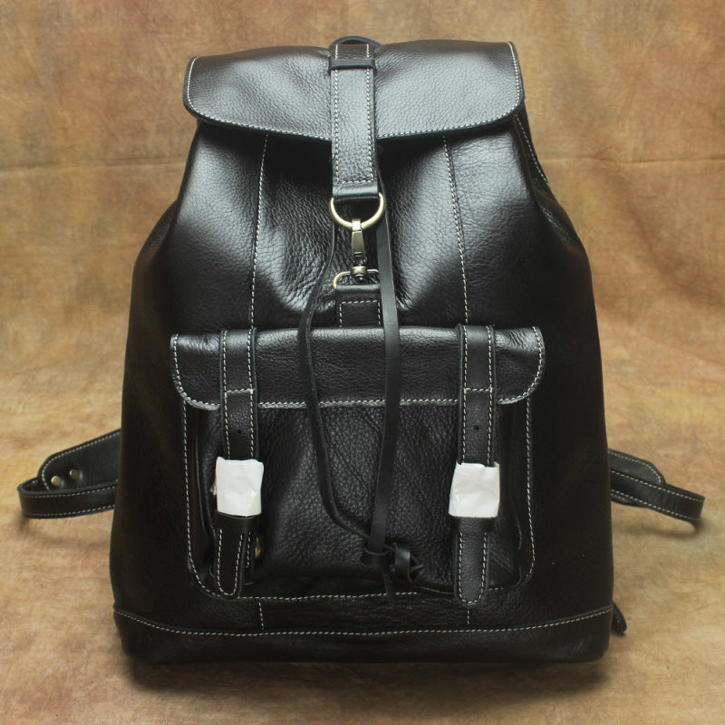 Design: Vintage Lambskin Brown Leather Men's 14'' Laptop Backpack Black Satchel Backpack For MenOverview: