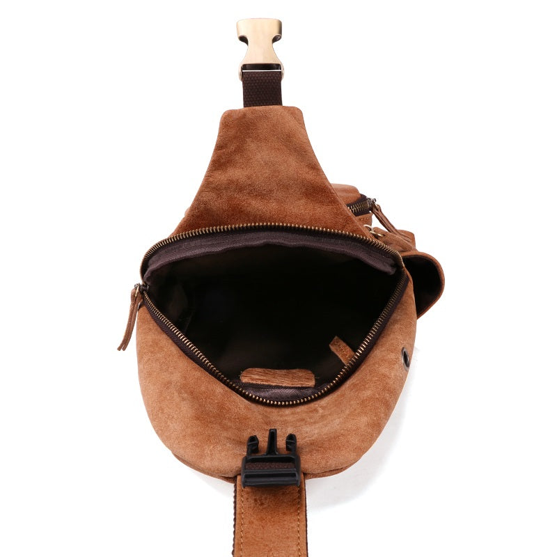 Style: Cool Brown Leather Mens Sling Bag Sling Shoulder Bag Chest Bag Sling Crossbody Bag For Men