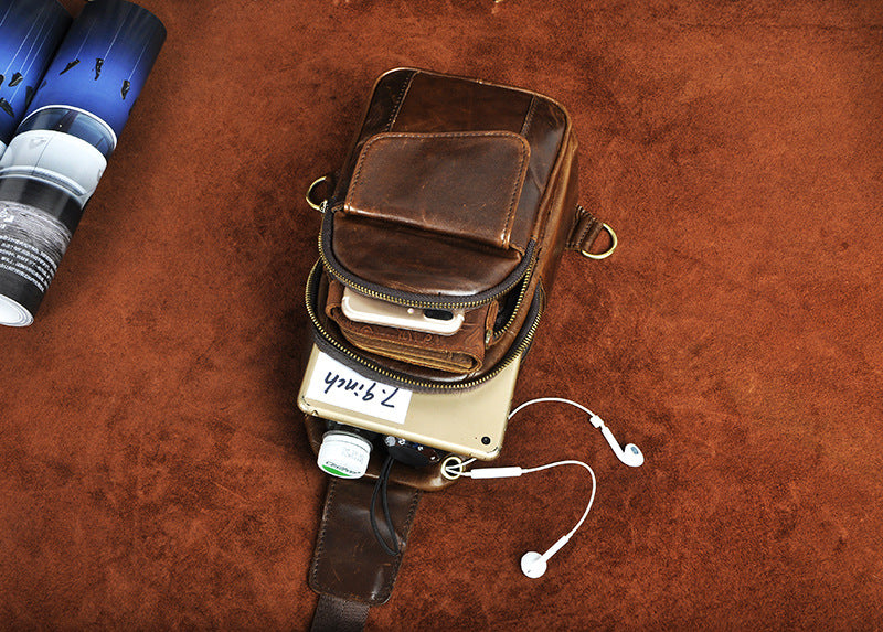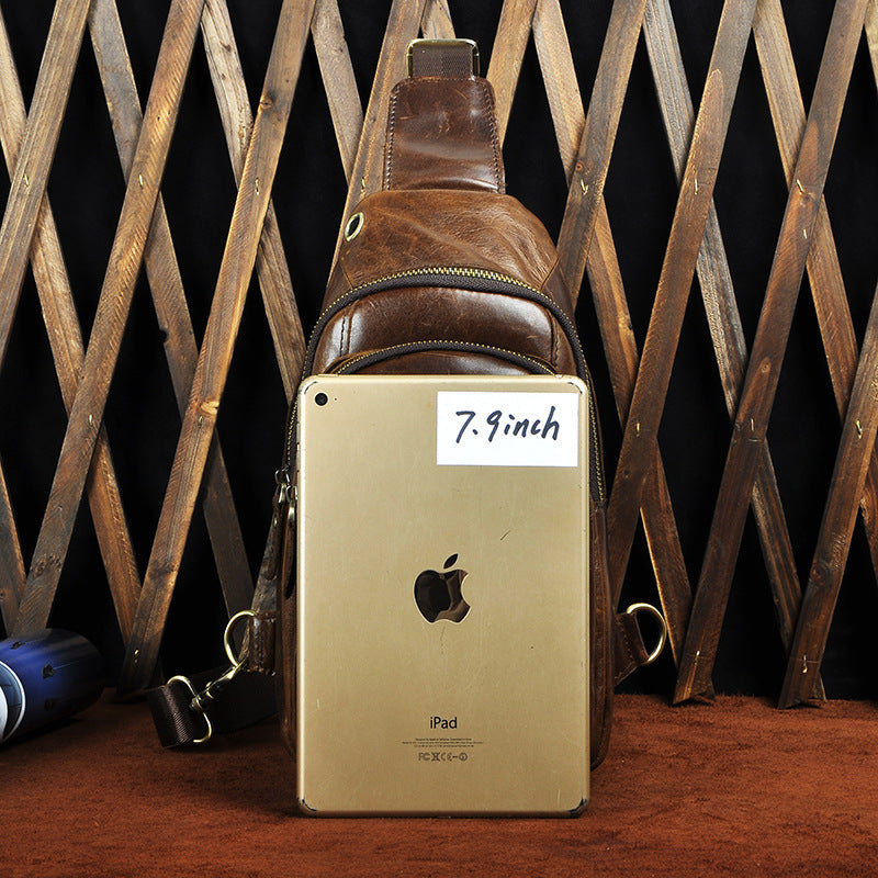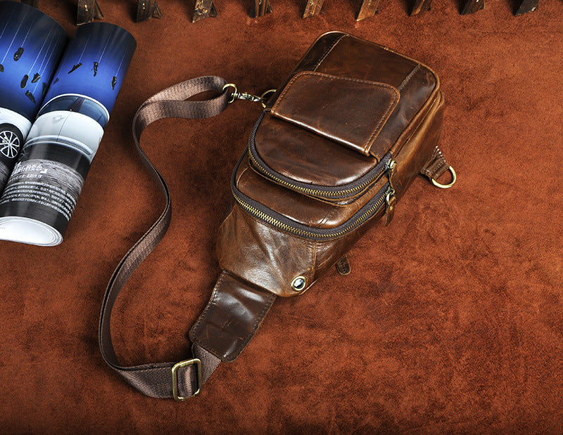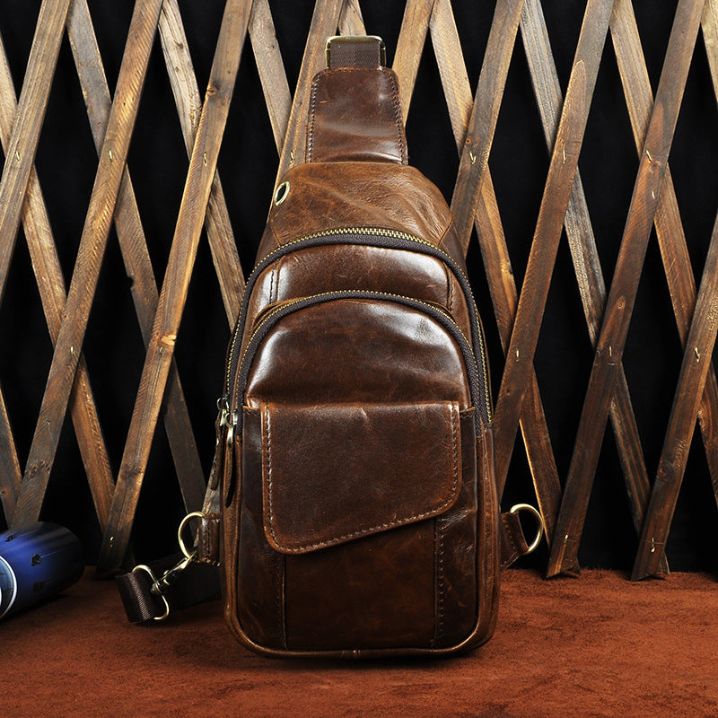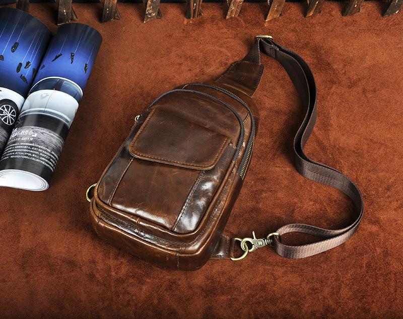 Style: Fashion Black Leather Men's Sling Bag Chest Bag Brown One Shoulder Backpack For Men