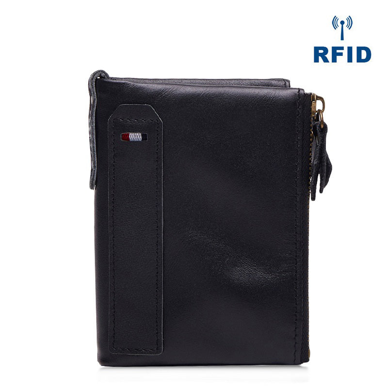 Design: RFID Brown Leather Men's Small Blue Bifold Business Wallet Black Slim billfold Wallet Coin Purse For Men