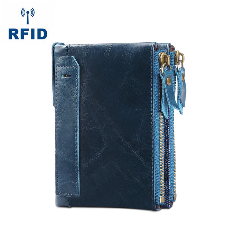 Style: RFID Brown Leather Men's Small Blue Bifold Business Wallet Black Slim billfold Wallet Coin Purse For Men