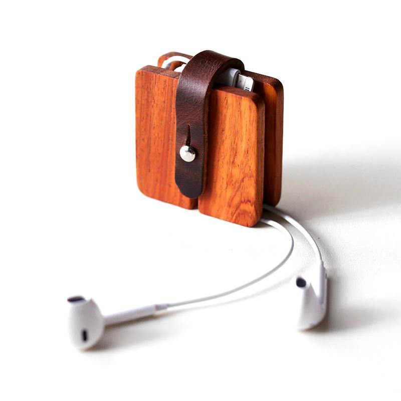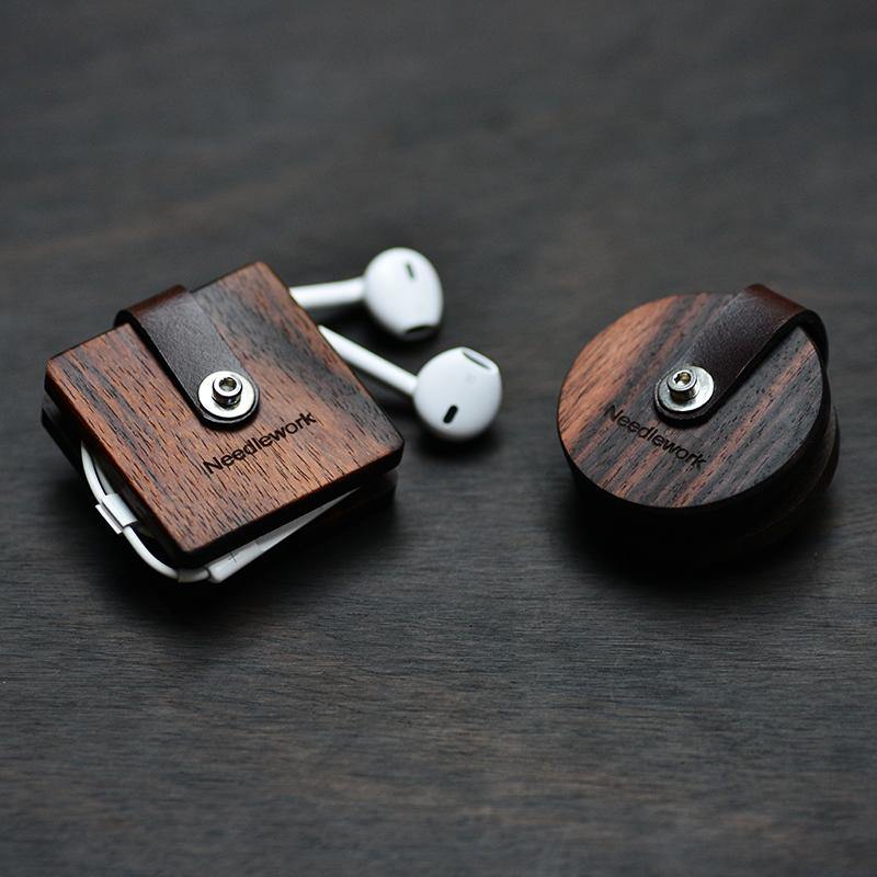 Style: Round Wooden Earphone Holder Headphone Wooden Organizer Rolling Keeper Cable Organizer Gift for audiophile