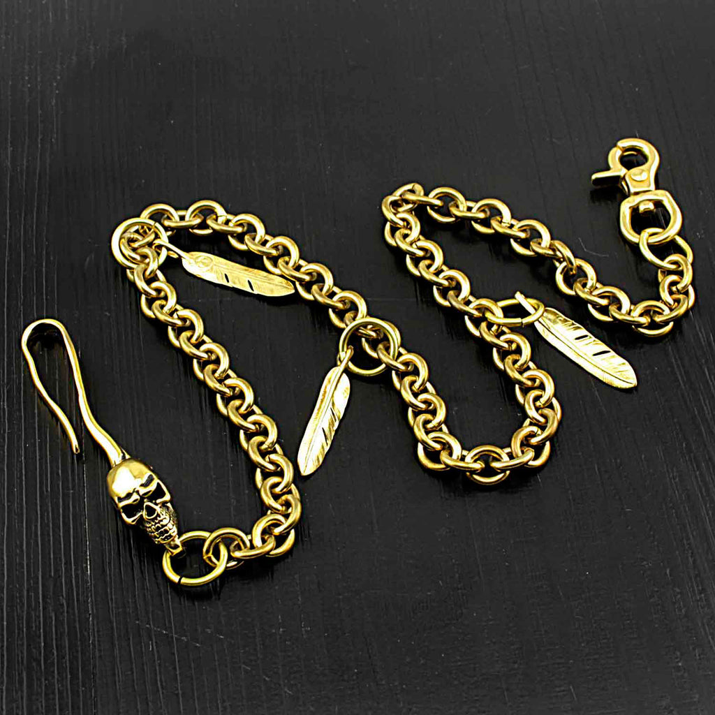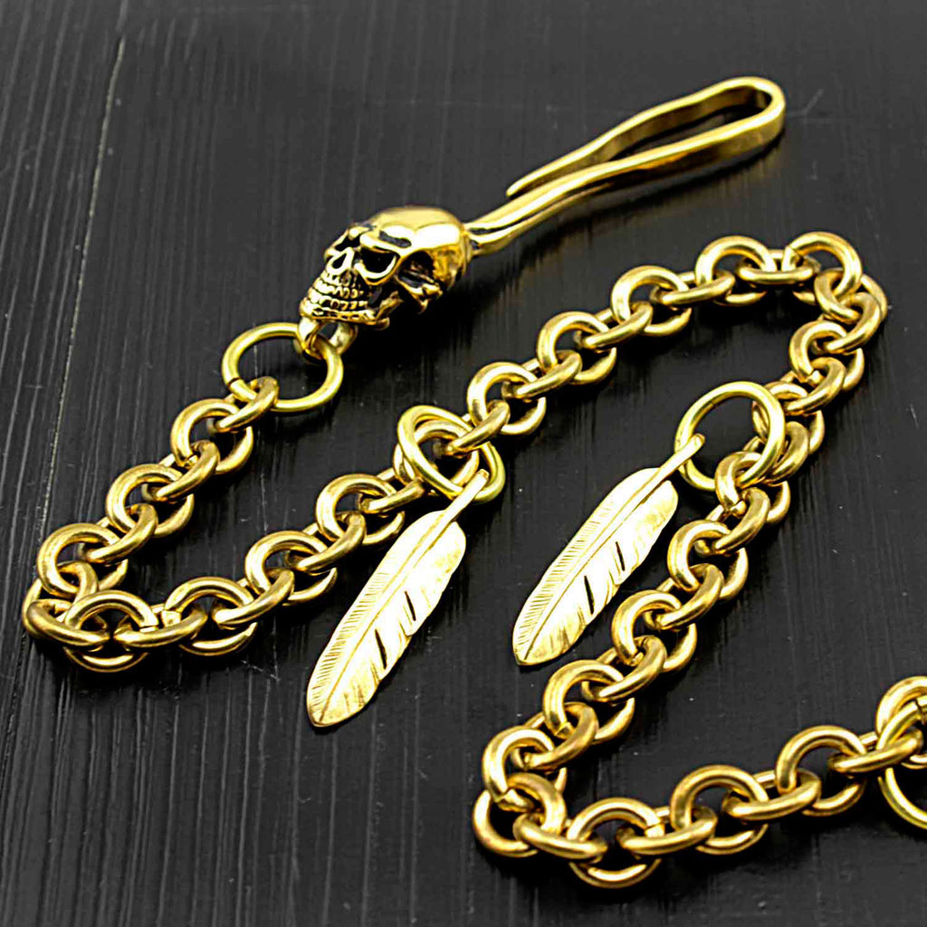 Design: Badass Brass SKull Long Wallet CHain Biker wallet Chain Gold Pants Chains For Men