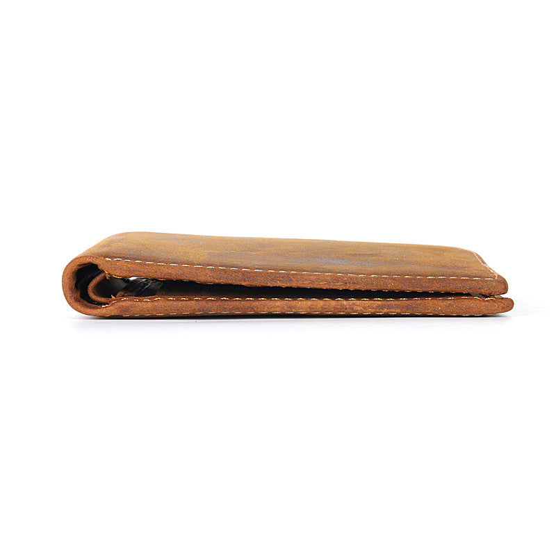 Design: Slim Brown Leather Men's Bifold Small Wallet billfold Front Pocket Wallet For Men