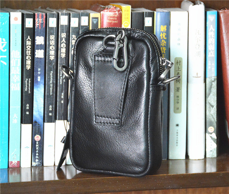 Design: Black LEATHER MEN'S Small Belt Pouch Mini Side bag Vertical Phone Bag MESSENGER BAG Waist Bag FOR MEN