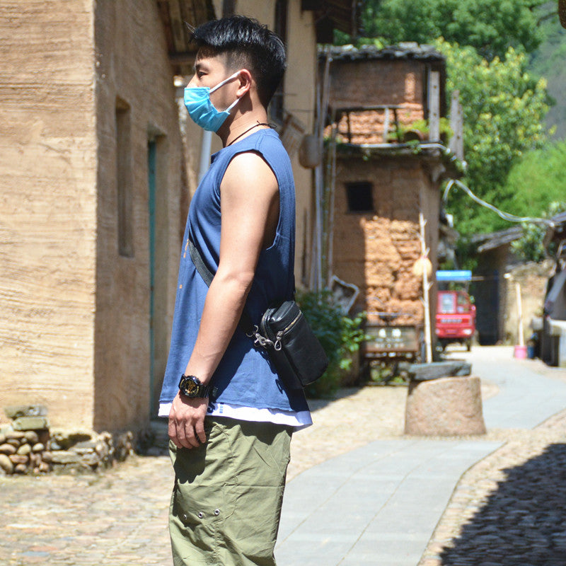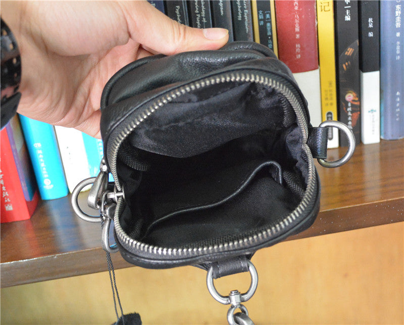 Design: Black LEATHER MEN'S Small Belt Pouch Mini Side bag Vertical Phone Bag MESSENGER BAG Waist Bag FOR MENOverview: