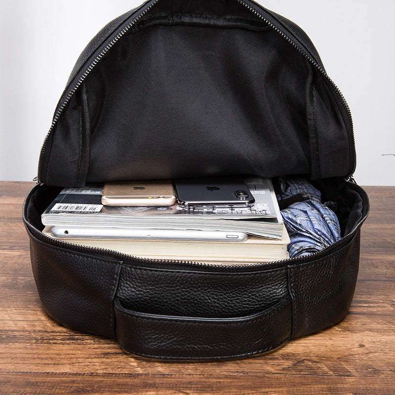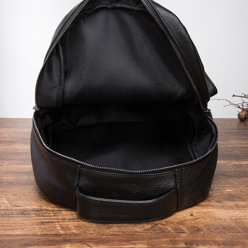 Black Mens Leather College Backpack Laptop Backpack Black Travel Backpack for Men