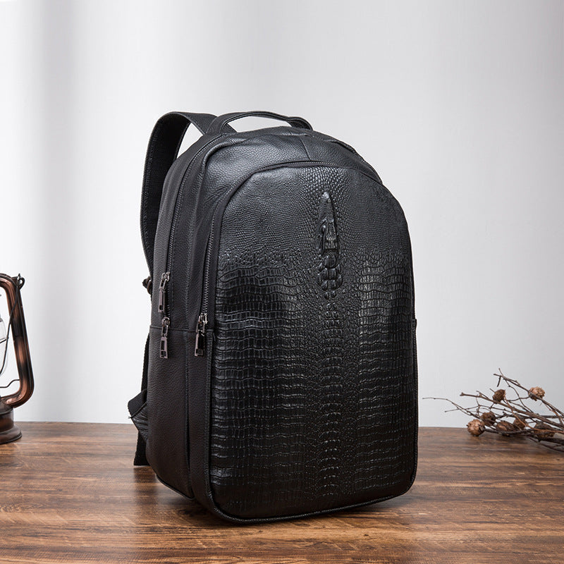 Design: Black Mens Leather College Backpack Laptop Backpack Black Travel Backpack for Men