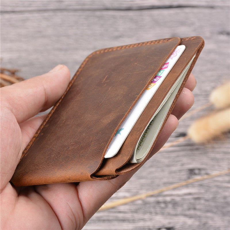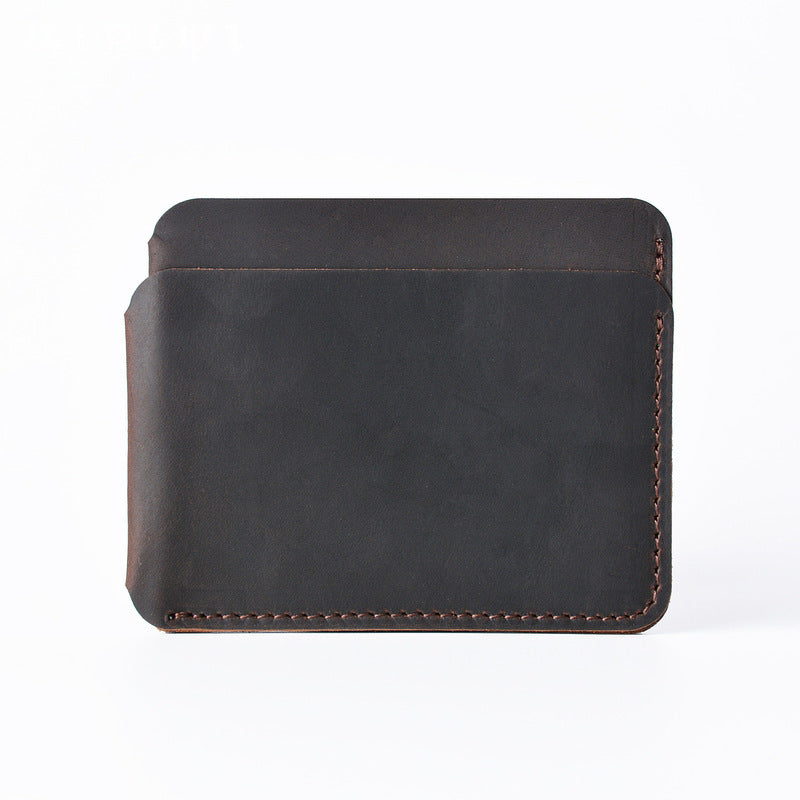 Style: Vintage Brown Leather Men's Front Pocket Wallet Black Slim Card billfold Wallet Small Wallet For Men