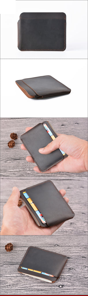 Design: Vintage Brown Leather Men's Front Pocket Wallet Black Slim Card billfold Wallet Small Wallet For Men