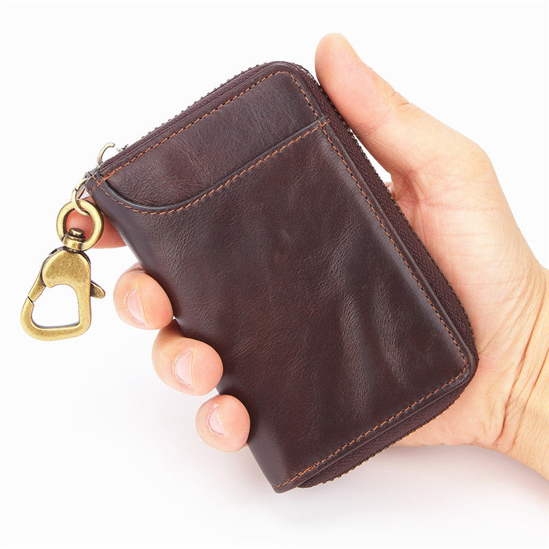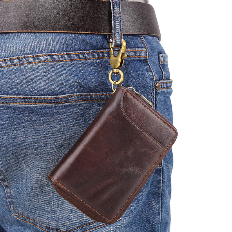 Style: Cool Brown Leather Men's Car Key Wallet billfold Small Key Wallet For Men