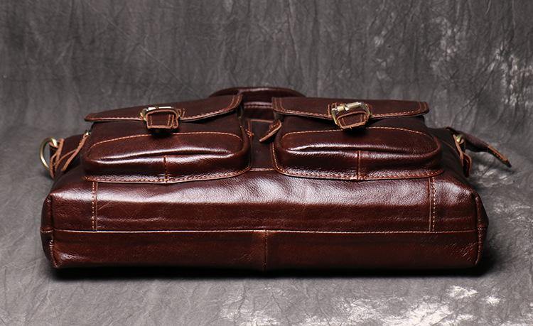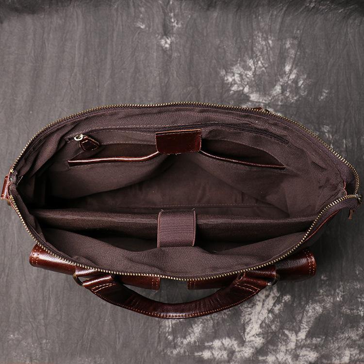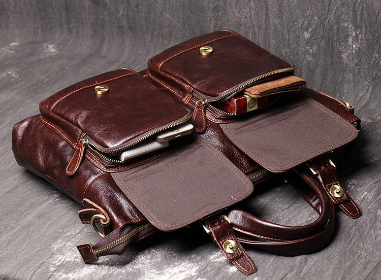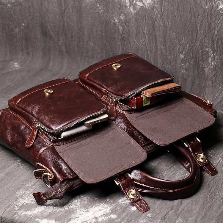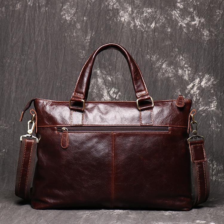 Design: Simple Oiled Leather Men's Red Brown Professional Briefcase 14‘’ Laptop Handbag Business Bag For Men