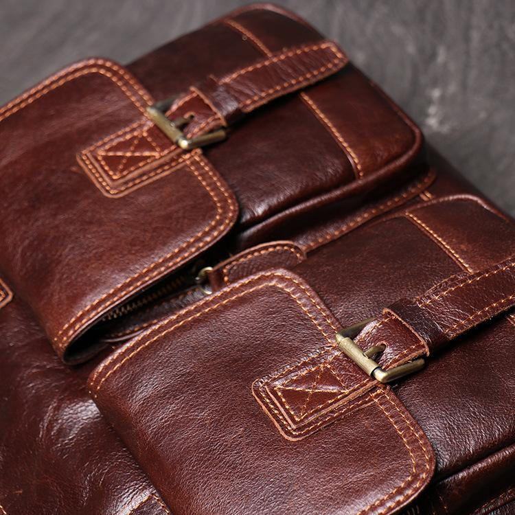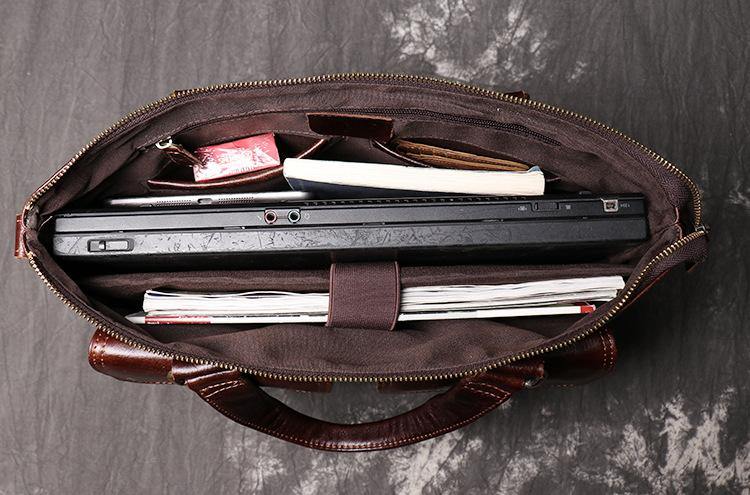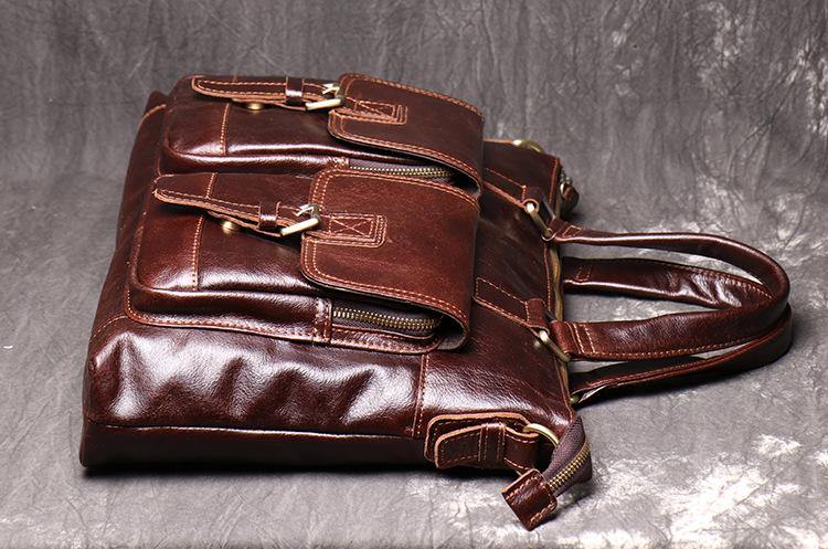 Oiled Leather Men's Red Brown Professional Briefcase 14‘’ Laptop Handbags Business Bag For Men