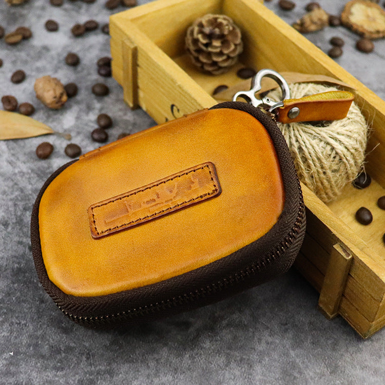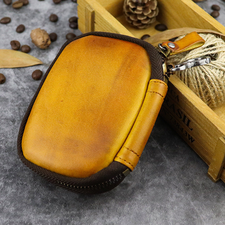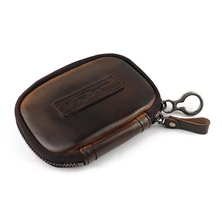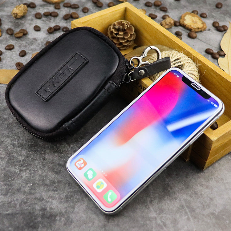 Style: Cool Black Leather Men's Key Wallet Zipper Car Key Holder Card Wallet For Men