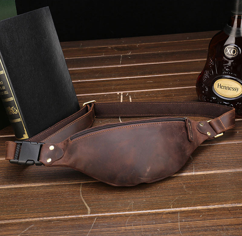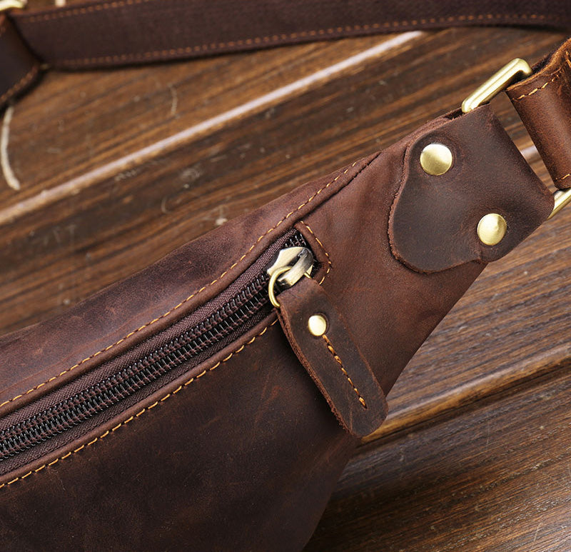 Design: Vintage Brown Leather Men's Fanny Pack Waist Bag Brown Hip Pack Chest Bag For Men