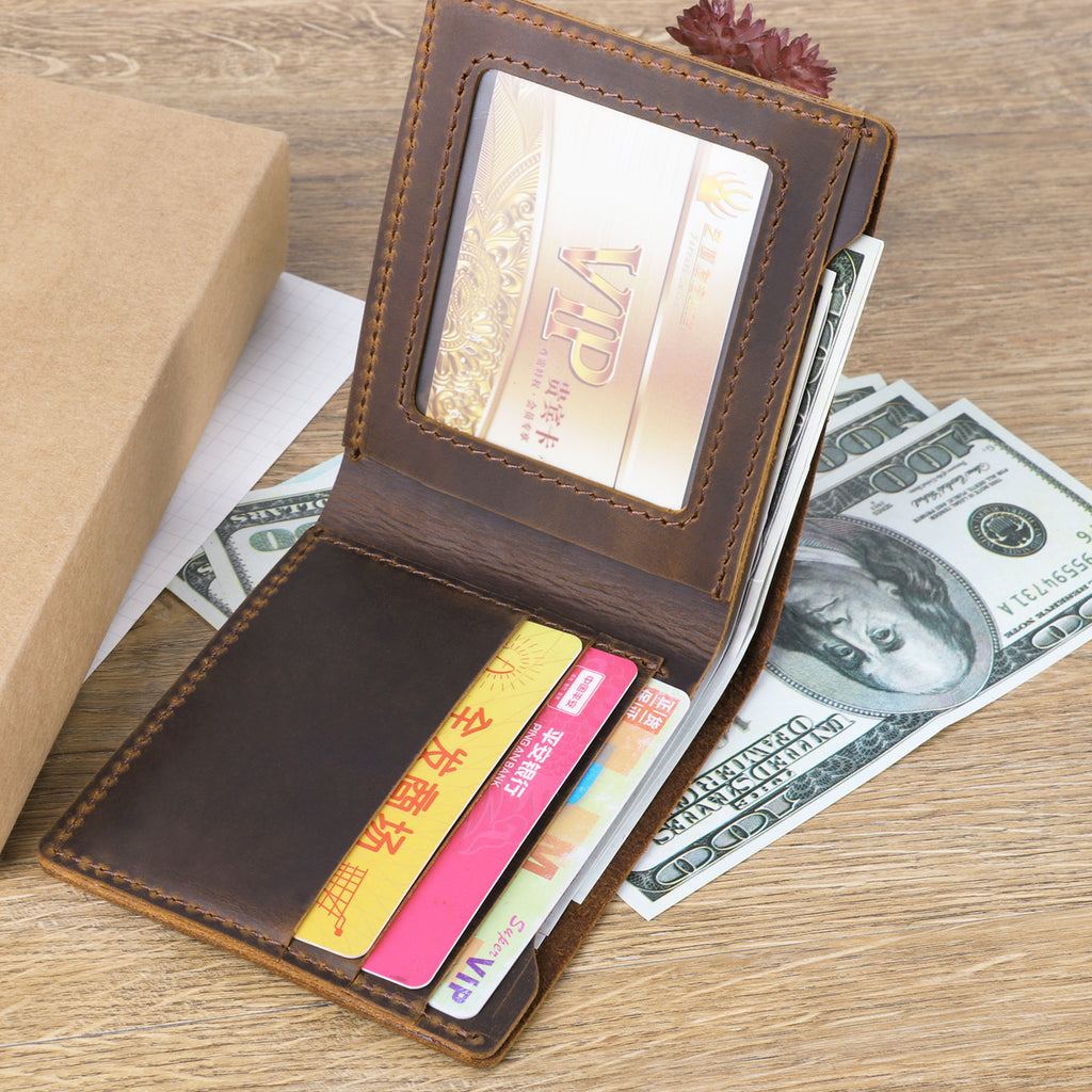 Style: Vintage Mens Brown Leather's Bifold Small Wallet Black Front Pocket Wallet For Men