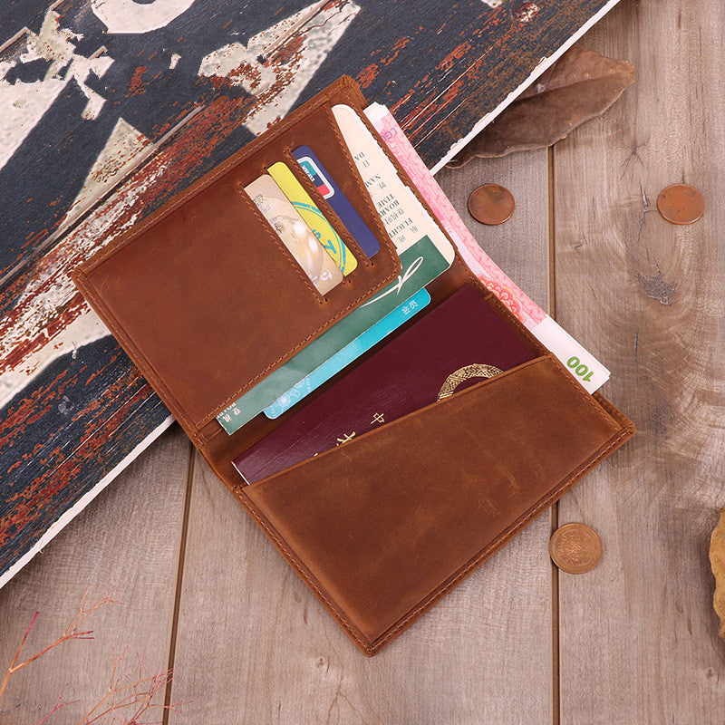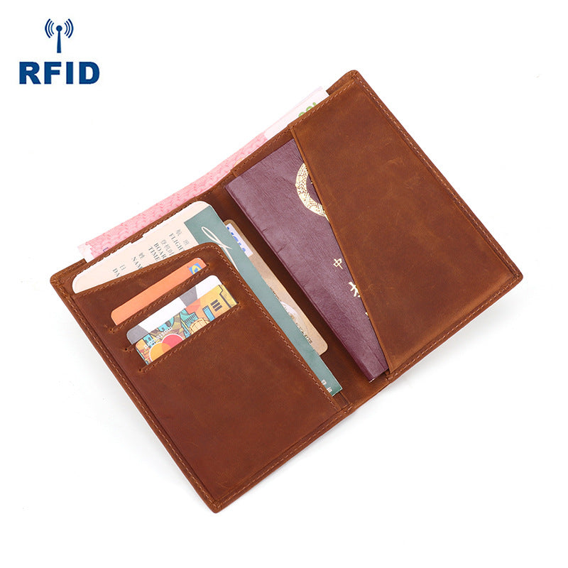 Style: Slim Black RFID Men's Leather Bifold Dark Brown Passport Wallet Travel Wallet Ticket Wallet For Men