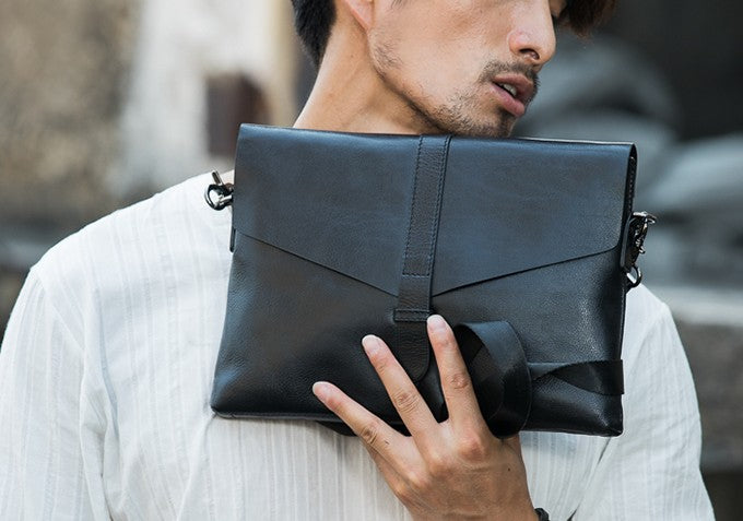 Style: Black Cool Leather Mens Shoulder Bags Messenger Bags for Men