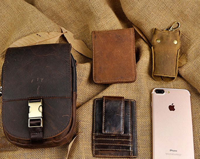 Design: Small Mens Leather Belt Pouch Holster Belt Case Cell Phone Waist Pouch for Men
