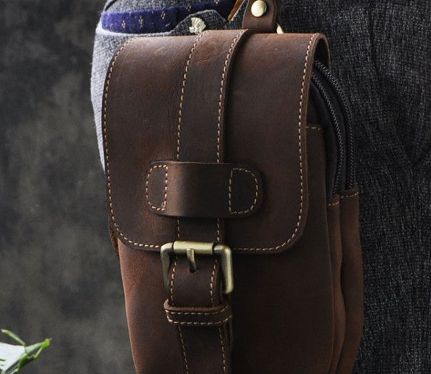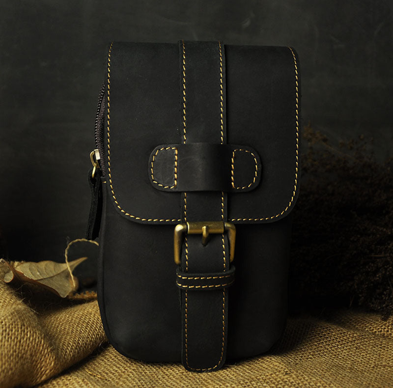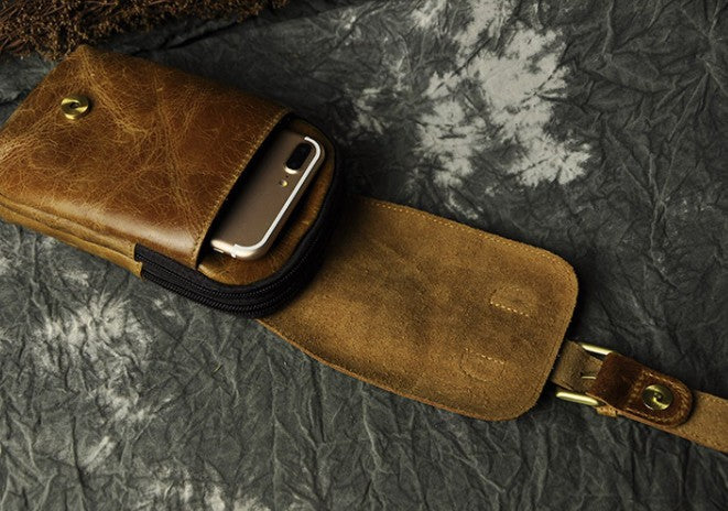Design: Small Mens Leather Belt Pouch Holster Belt Case Cell Phone Waist Pouch for Men