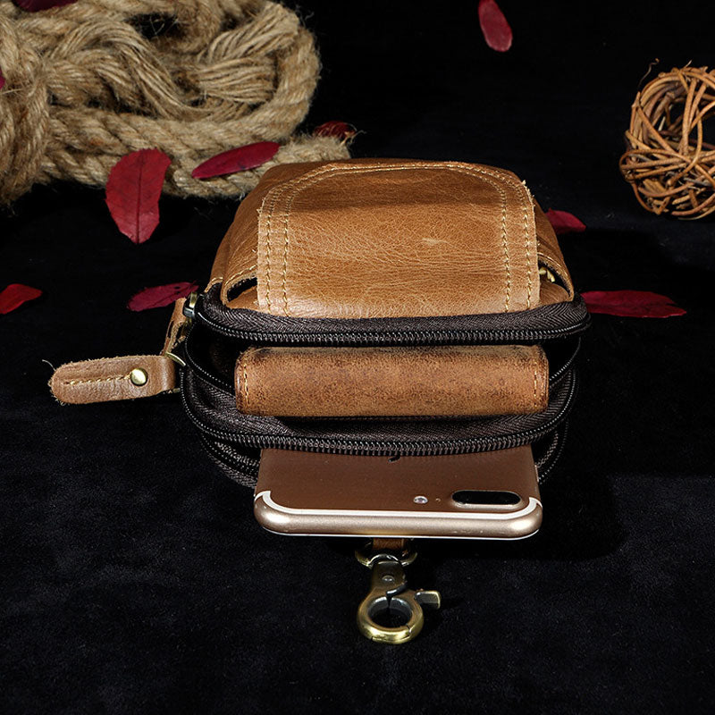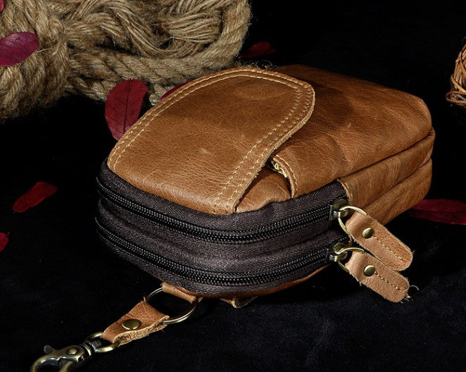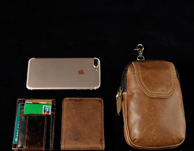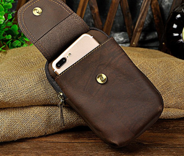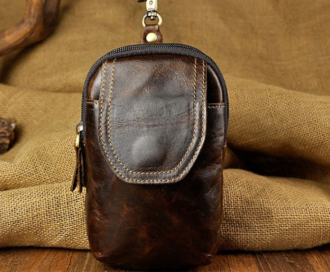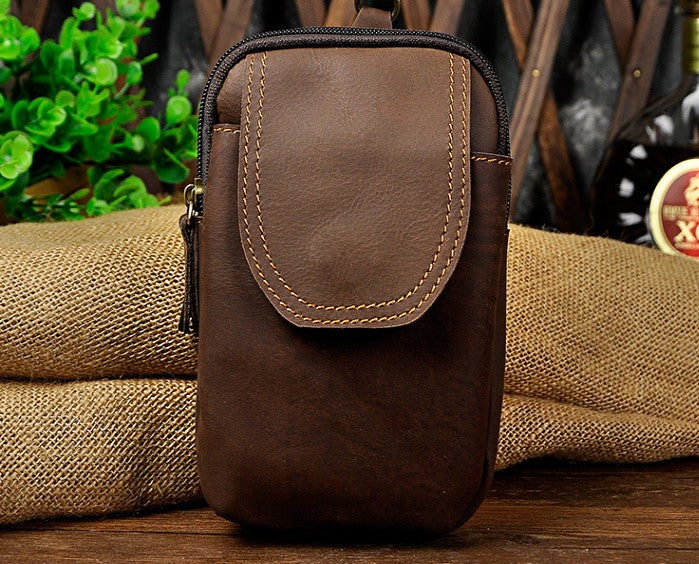 Design: Small Mens Leather Belt Pouch Holsters Belt Cases Cell Phone Waist Pouch for Men