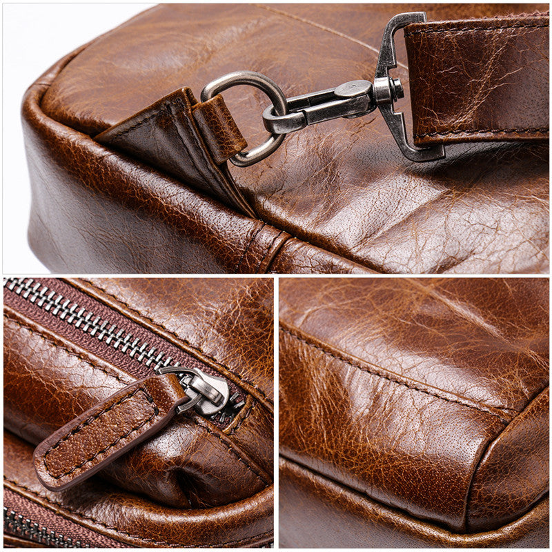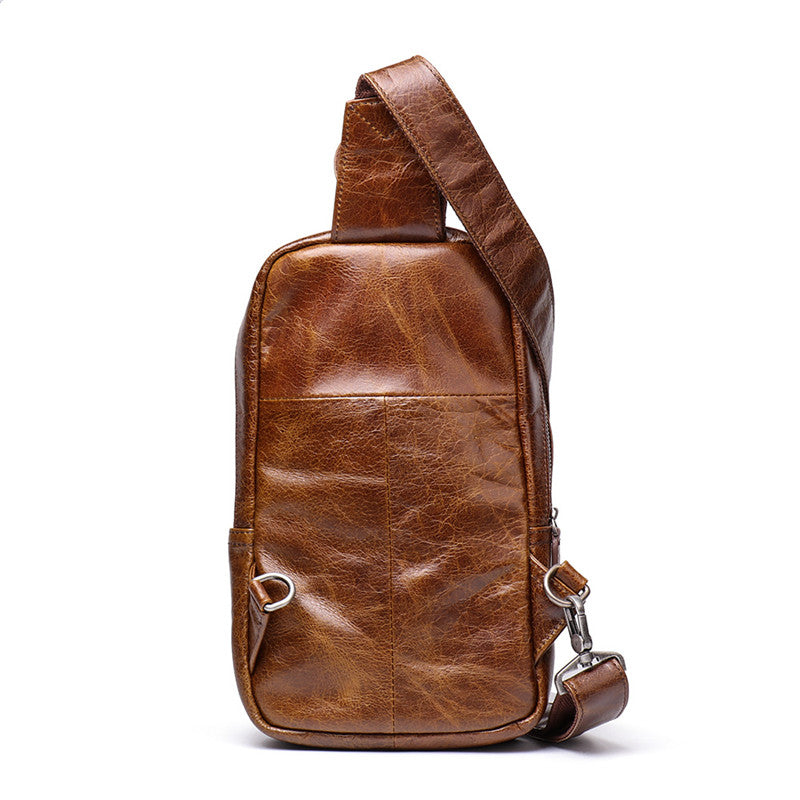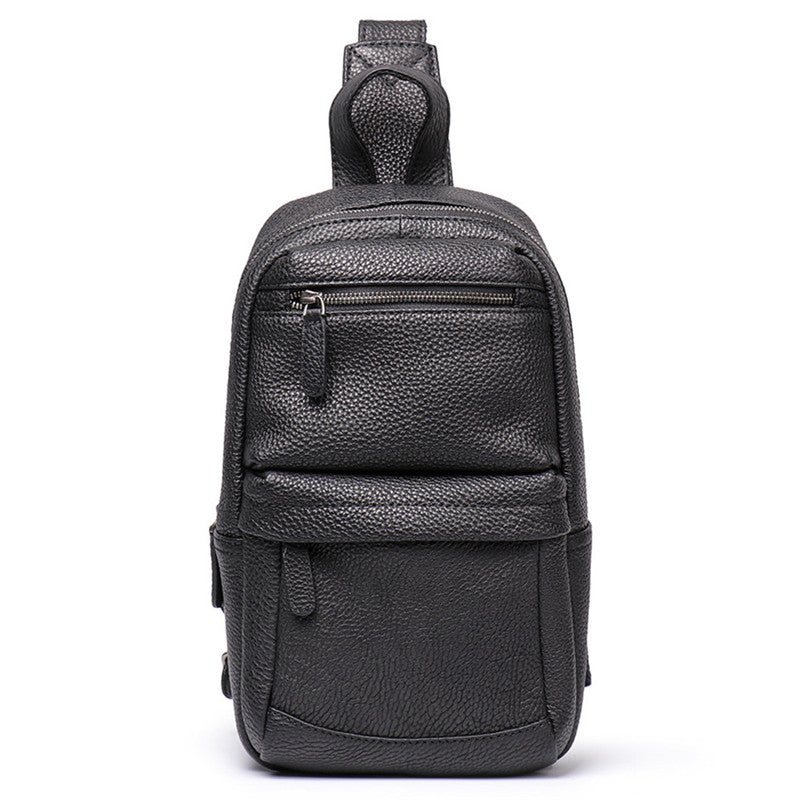 Design: Cool Black Leather Men's Sling Bag Chest Bag Sling Crossbody Bag Brown One Shoulder Backpack For Men