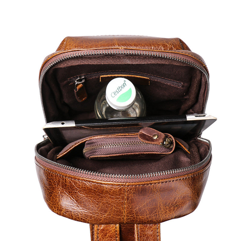 Style: Cool Black Leather Men's Sling Bag Chest Bag Sling Crossbody Bag Brown One Shoulder Backpack For Men