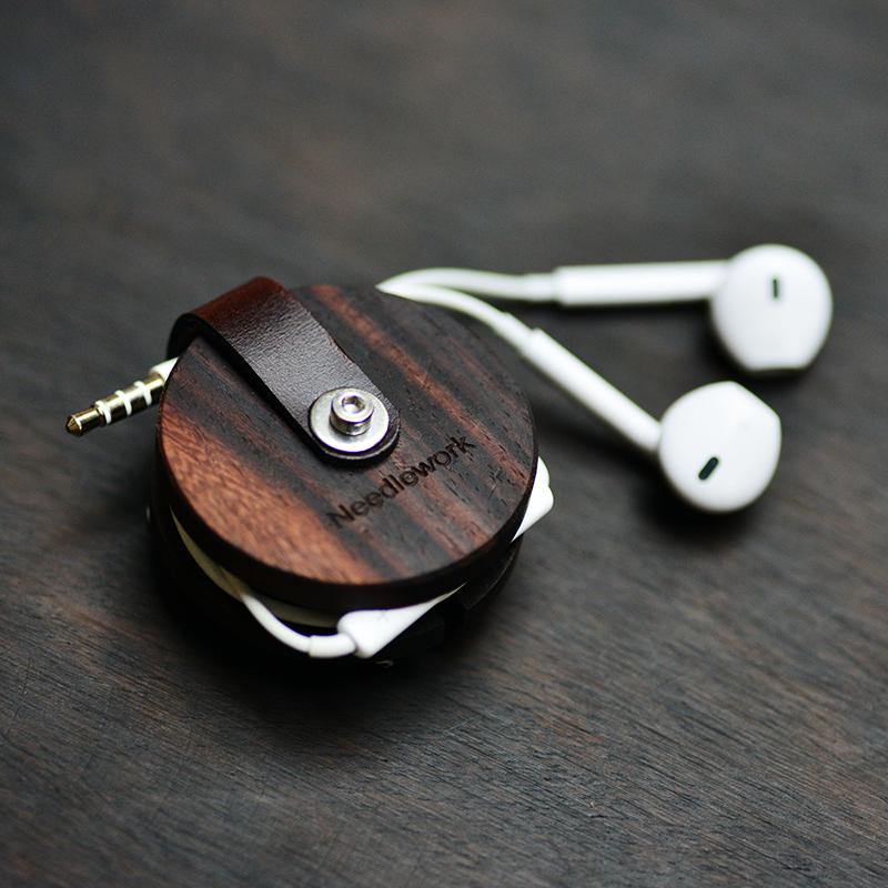Style: Square Wooden Earphone Holder Headphone Wooden Organizer Rolling Keeper Cable Organizer Gift for audiophile