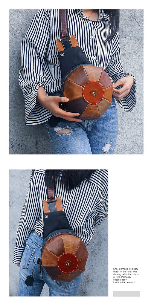 Style: Stitched Brown Leather Men's Sling Bag Shoulder Bag Chest Bag One Shoulder Backpack For Men