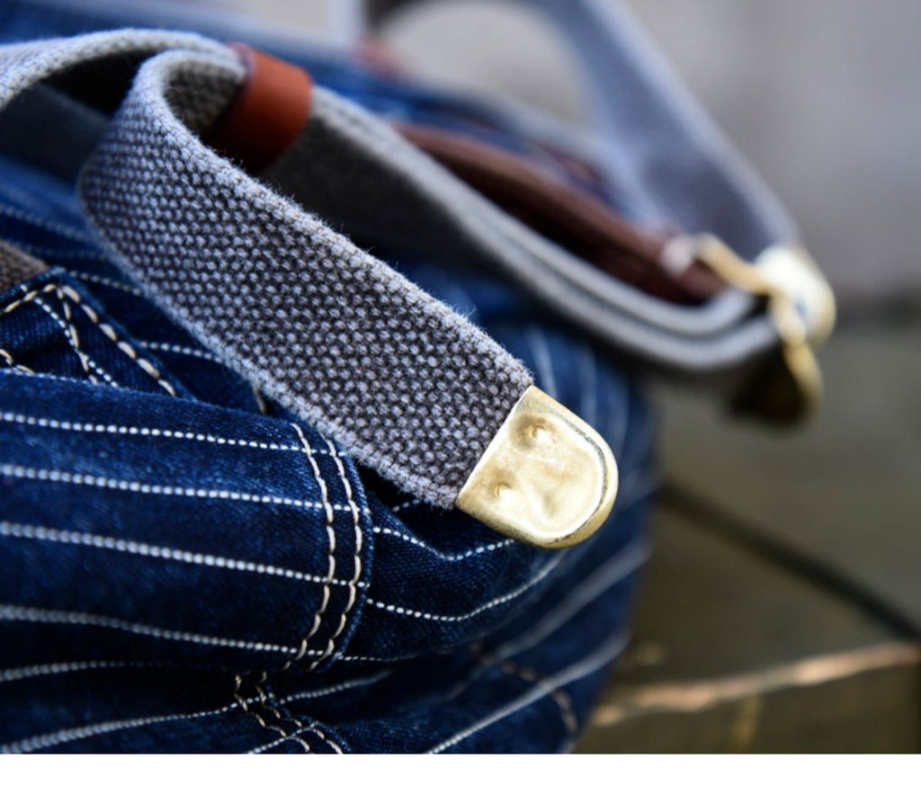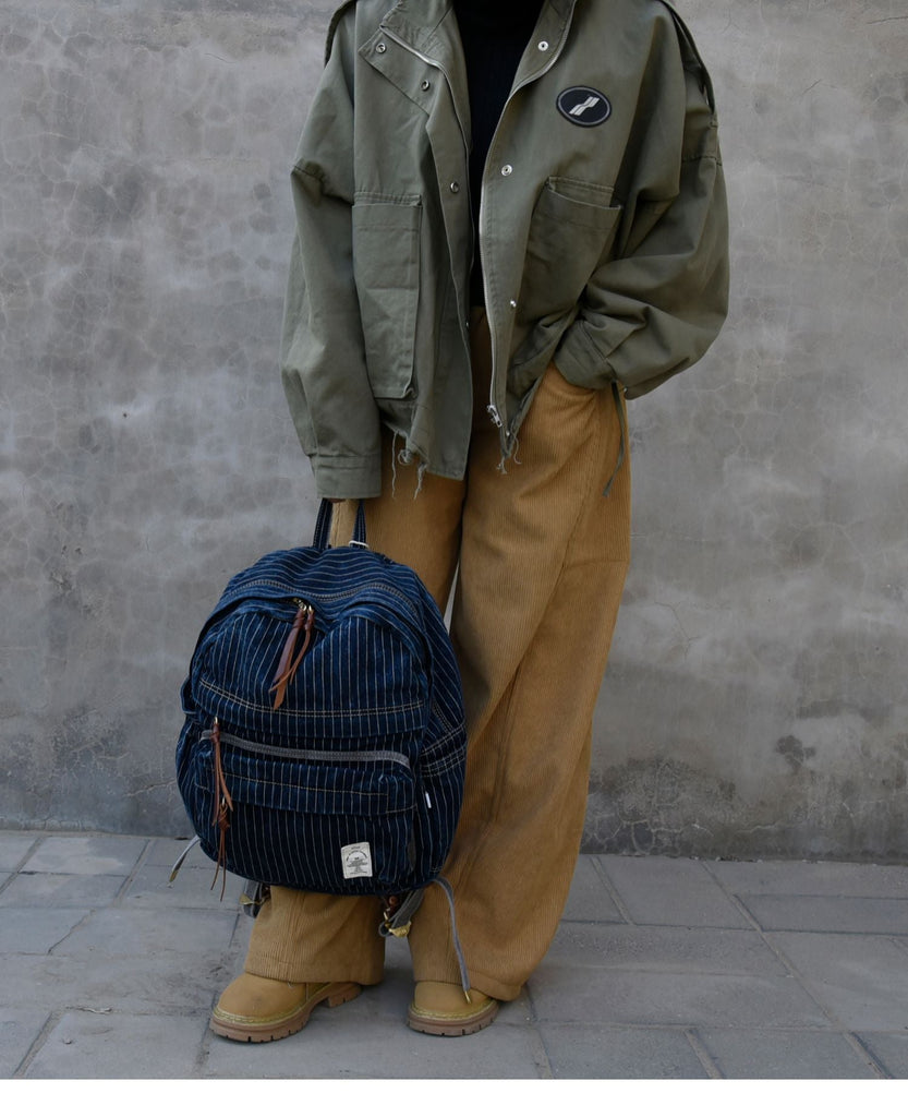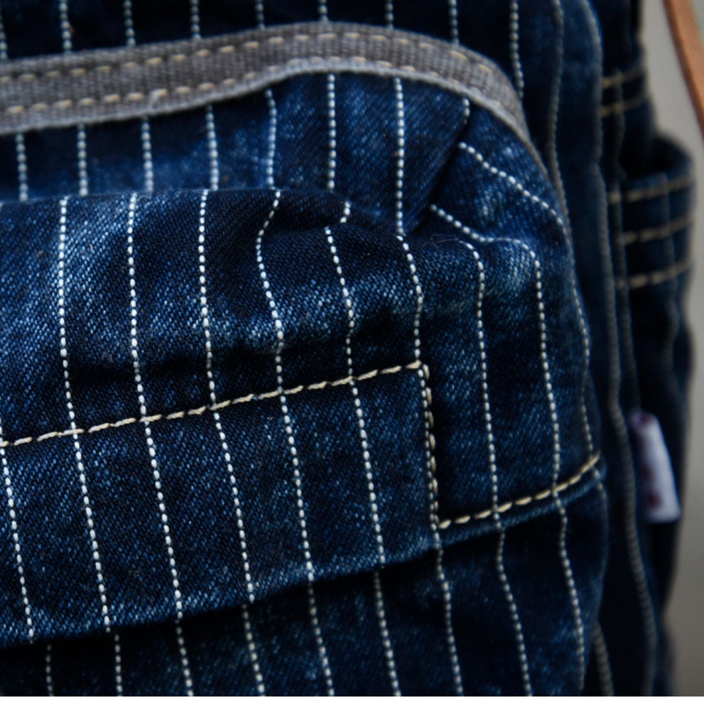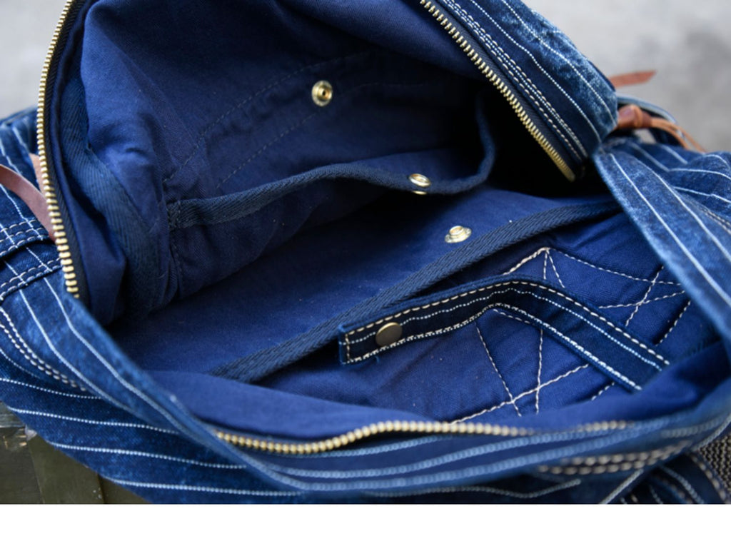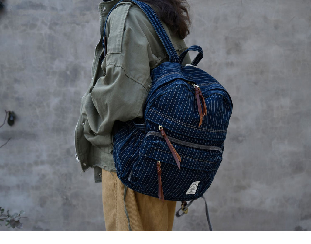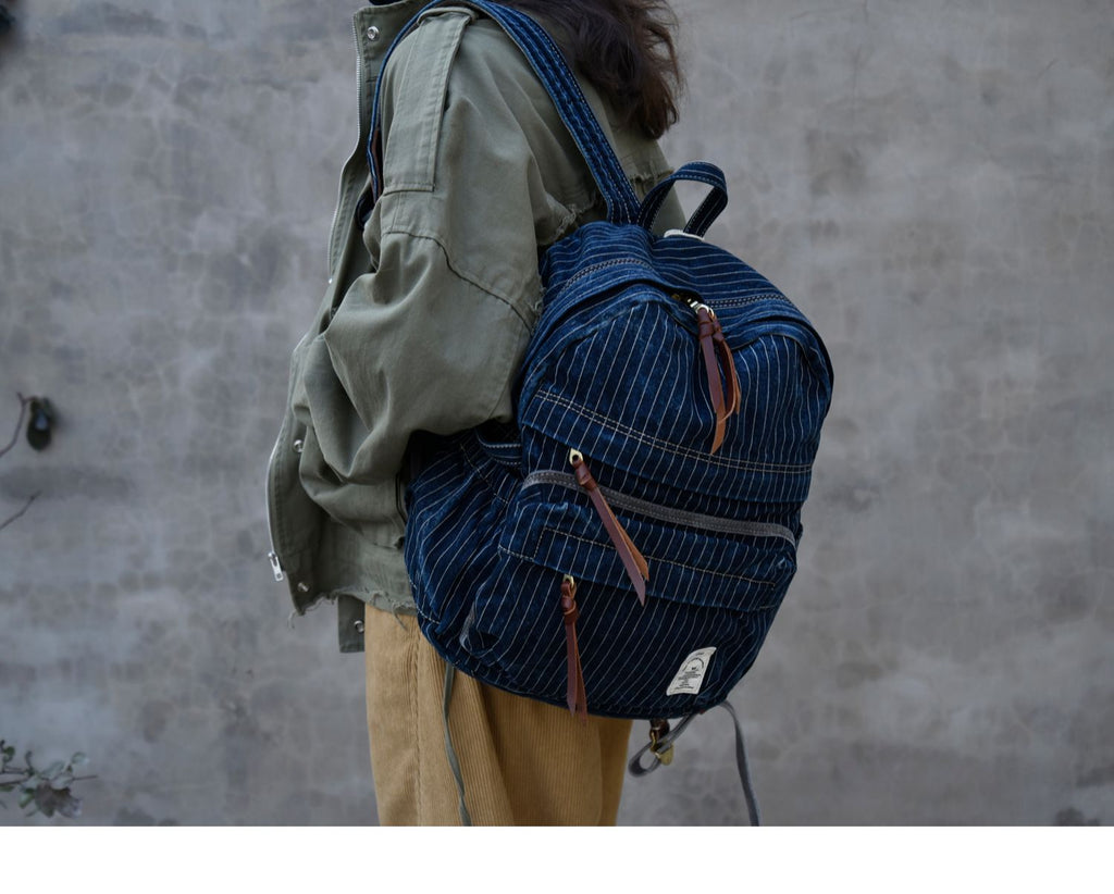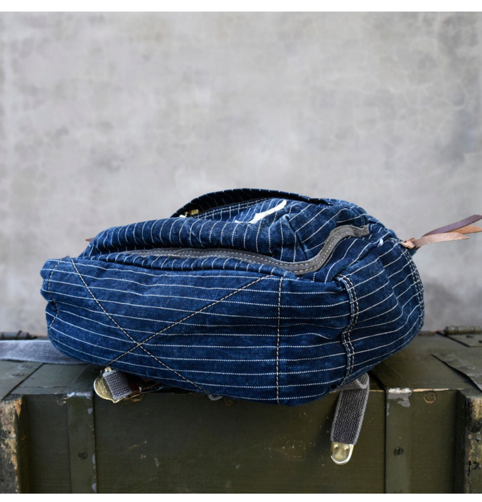 Striped Jean Backpack Mens Striped Backpack Large Blue Denim Backpack for Women