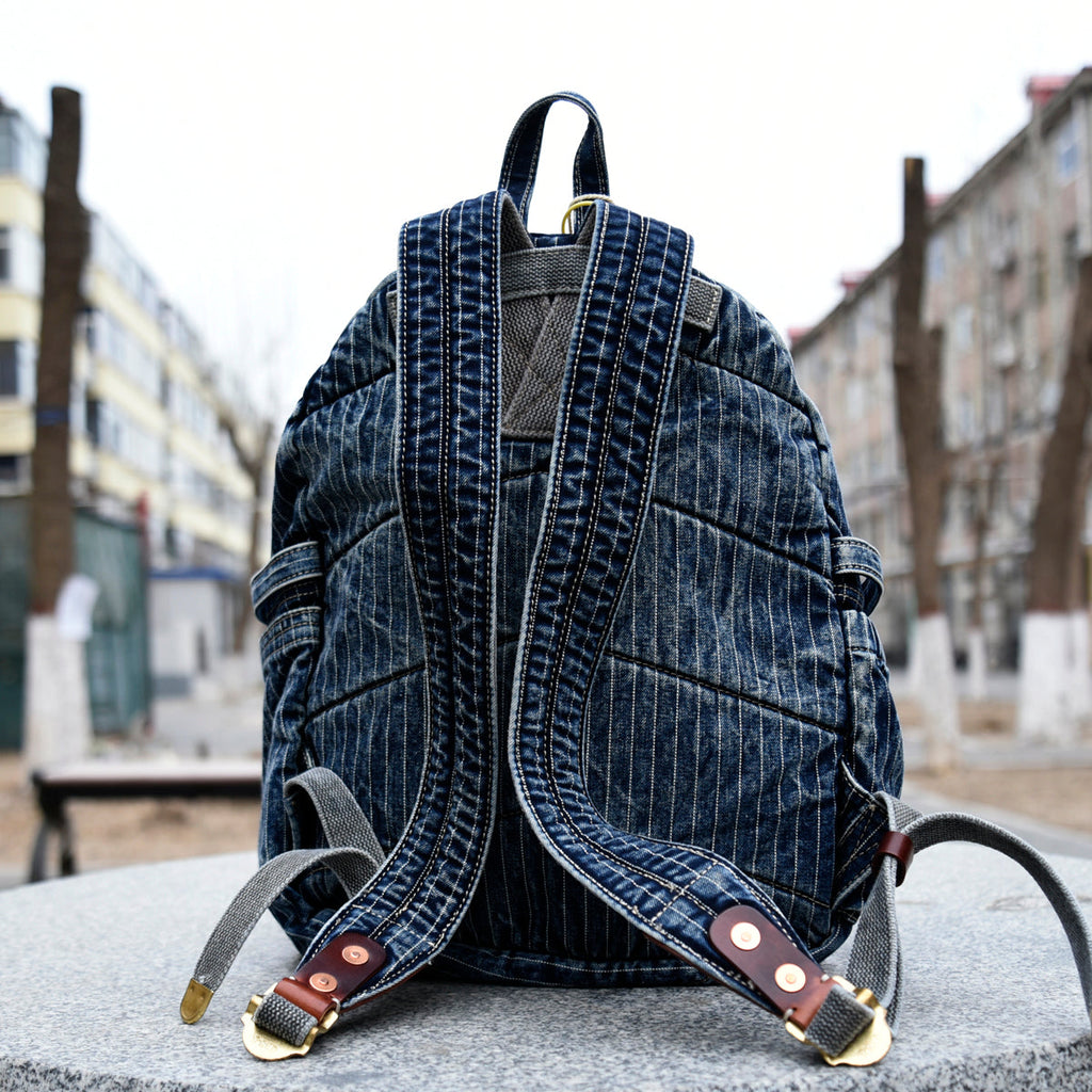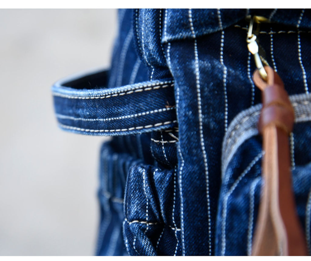 Style: Blue Denim Backpack for Women Striped Jean Backpack Mens Striped Backpack