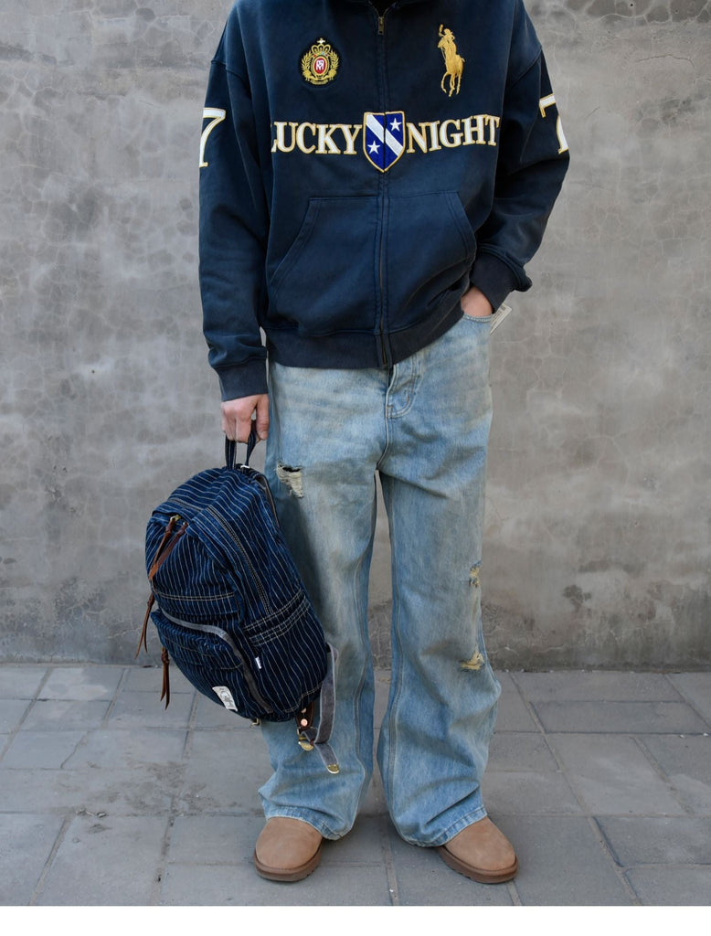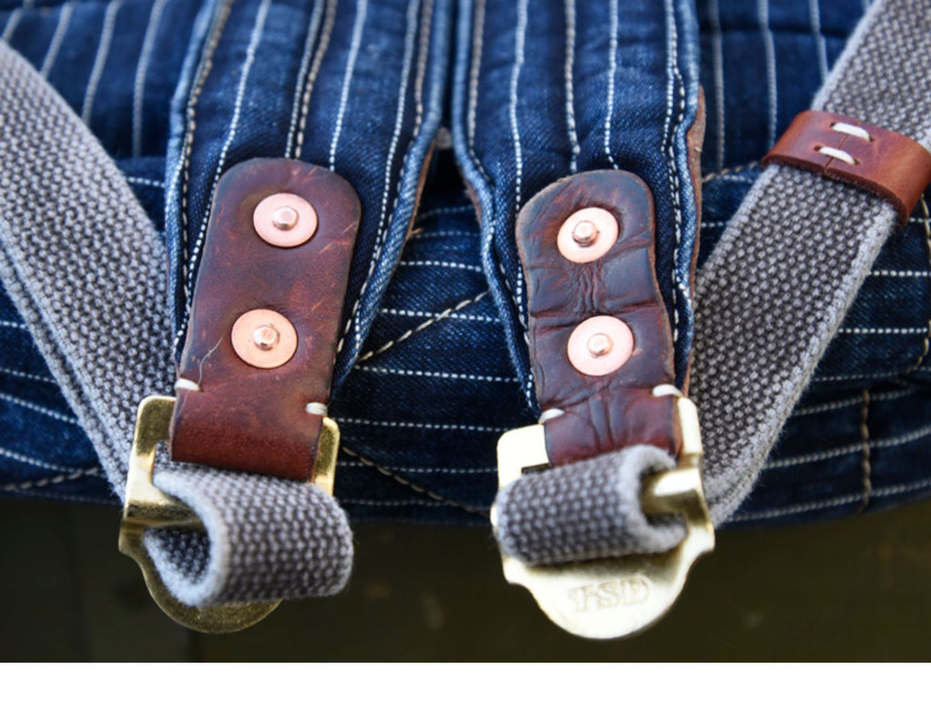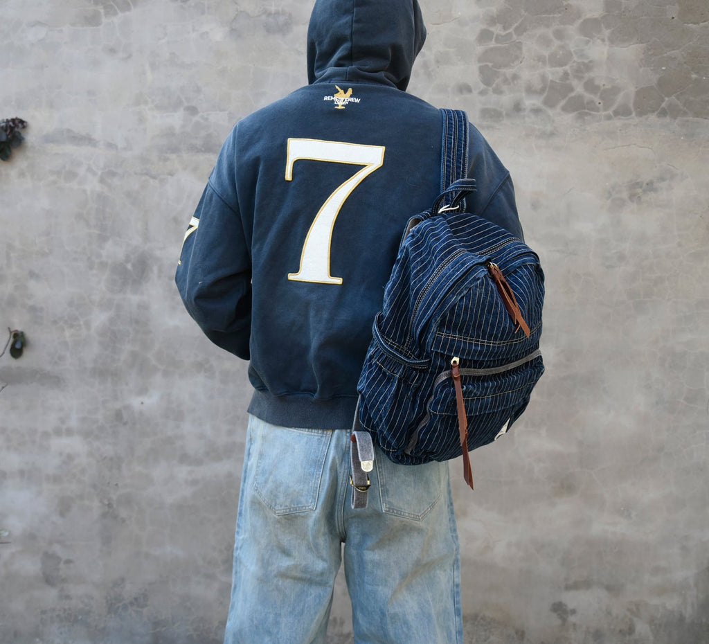 Design: Blue Denim Backpack for Women Striped Jean Backpack Mens Striped Backpack