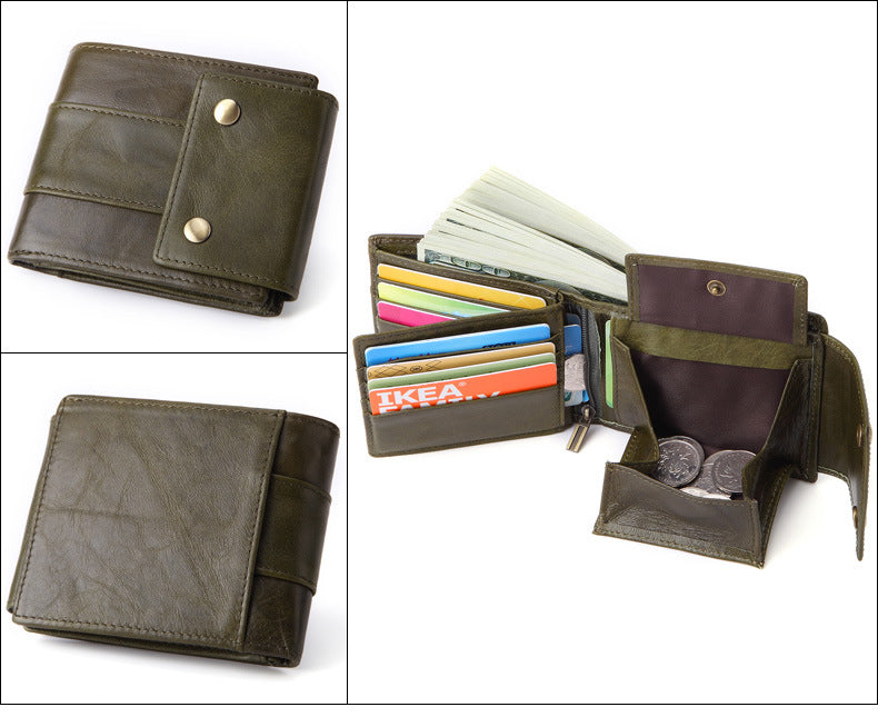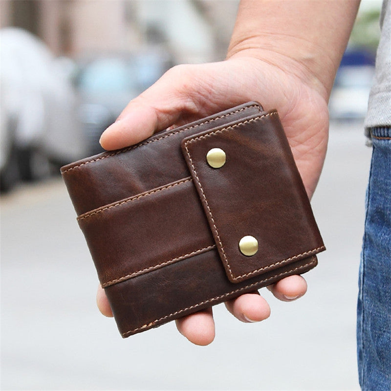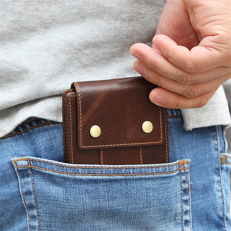 Style: Cool Brown Leather Men's Trifold Small Wallet Multi-cards billfold Wallet For Men
